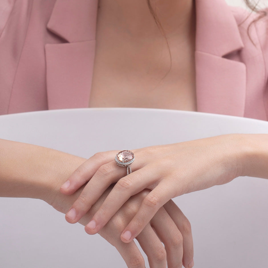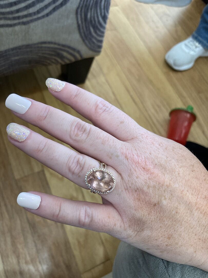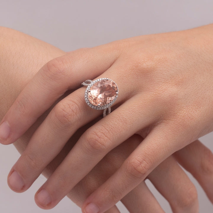 Oval Morganite Cocktail Ring with Diamond Halo