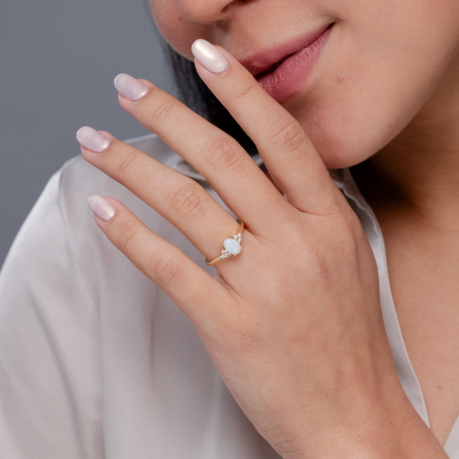 Tapered Shank Oval Opal Ring with Trio Diamond Accent