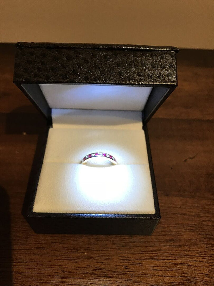 Channel Set Ruby and Diamond Semi Eternity Ring