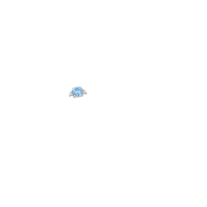Crafted in 14k white gold. Features 1 AAAA cushion-cut aquamarine (heated), approximately 10mm, 3.50 carats, claw-set. Accented with 6 round G-H VS diamonds totaling 0.35 carats, prong-set.