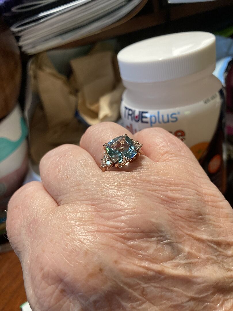 Cushion Aquamarine Engagement Ring with Trio Diamonds