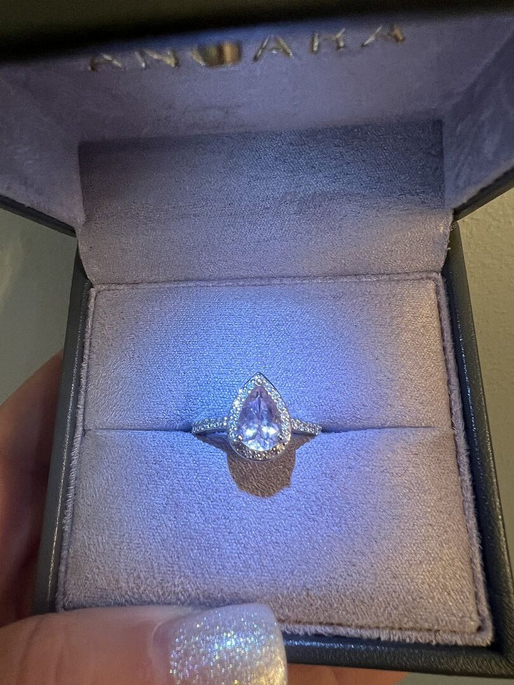 Prong-Set Pear Morganite Ring with Diamond Halo