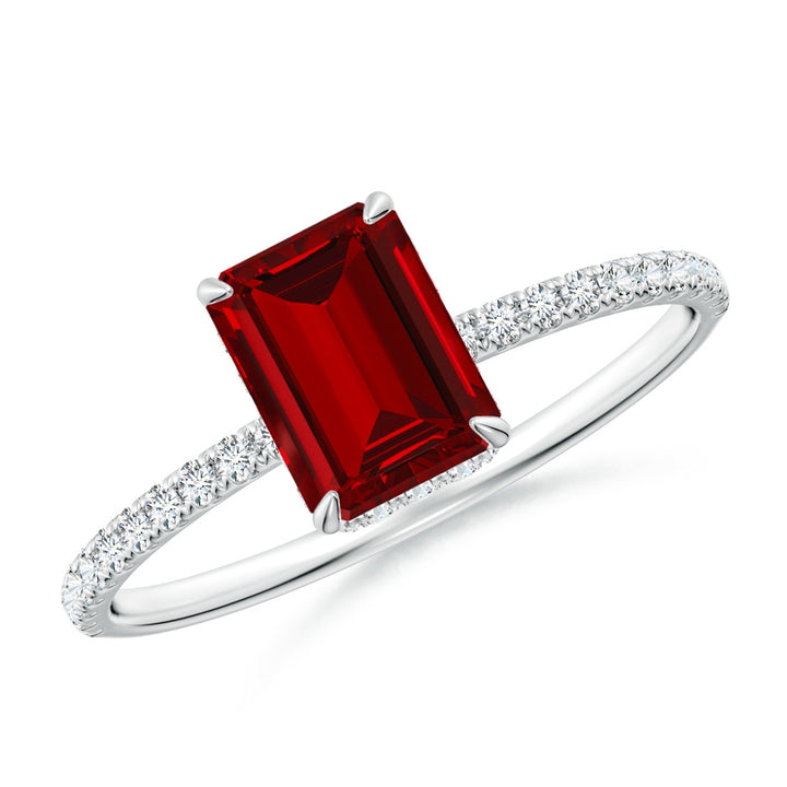 Lab-Grown Emerald-Cut Ruby Hidden Halo Classic Engagement Ring