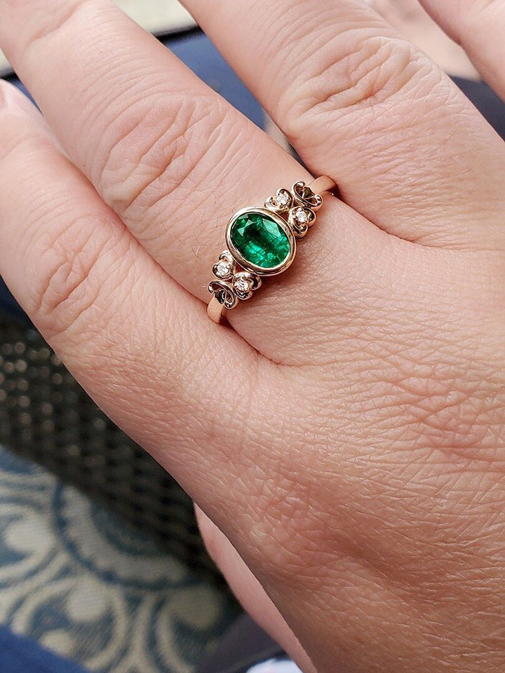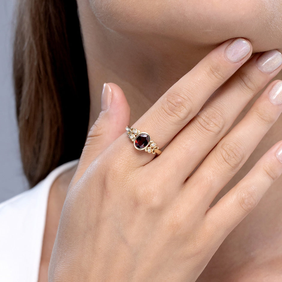 Vintage Style Bezel-Set Oval Garnet Ring with Diamonds
