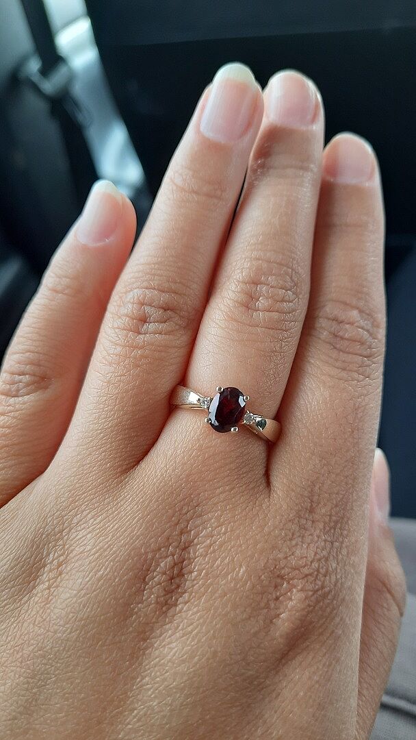 Tapered Shank Garnet Solitaire Ring with Diamond Accents