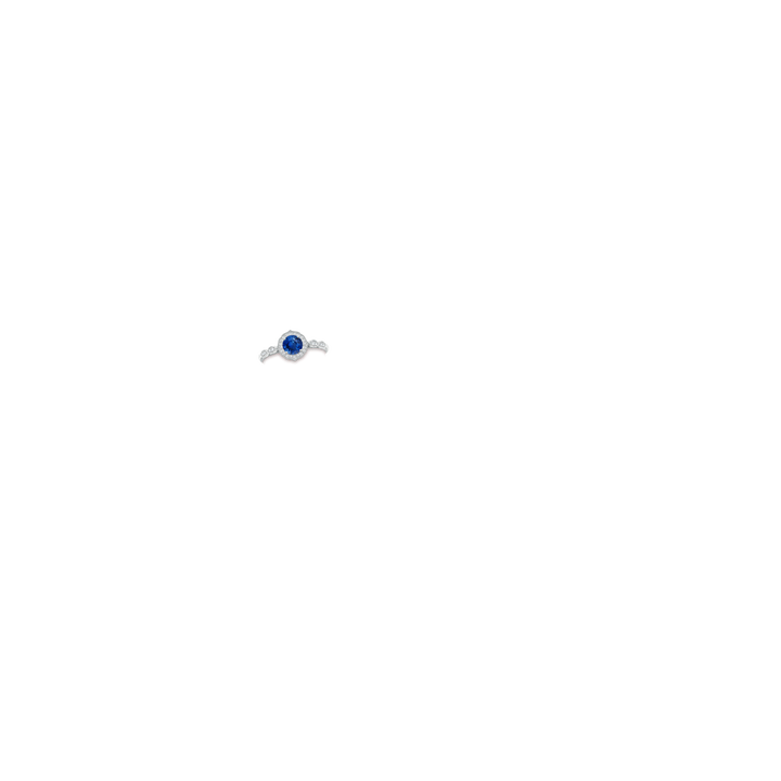 This Vintage Inspired Round Blue Sapphire Ornate Halo Engagement Ring by Angara enchants with its timeless beauty and intricate craftsmanship. The prong-set 5mm round AAA heated blue sapphire, symbolizing loyalty and nobility, is surrounded by a sparkling ornate halo of 28 pavé-set diamonds. The elaborately detailed shank features delicate milgrain accents and additional diamond embellishments, lending a vintage elegance that makes this ring a true heirloom piece. Set in 18k white gold, it offers a perfect blend of classic romance and refined luxury.