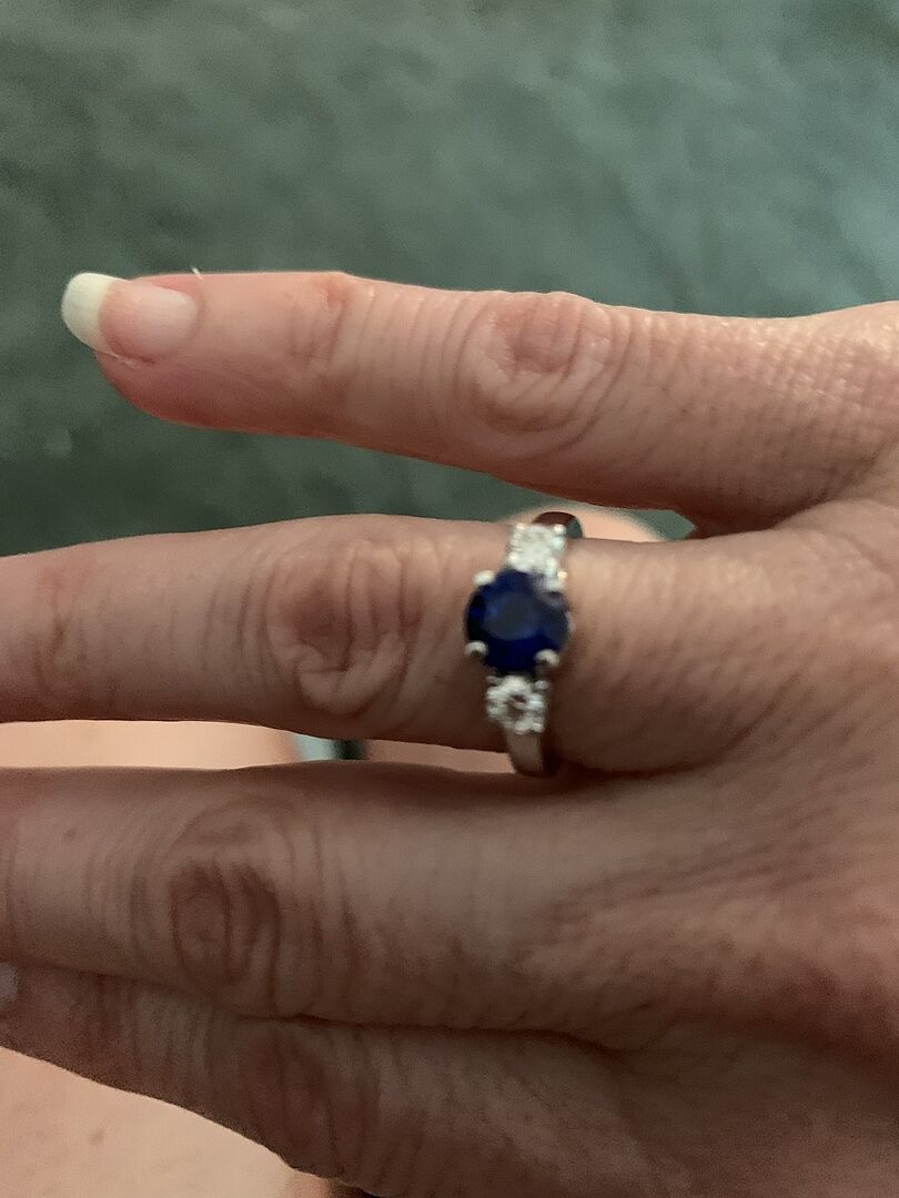Classic Round Blue Sapphire and Diamond Three Stone Engagement Ring