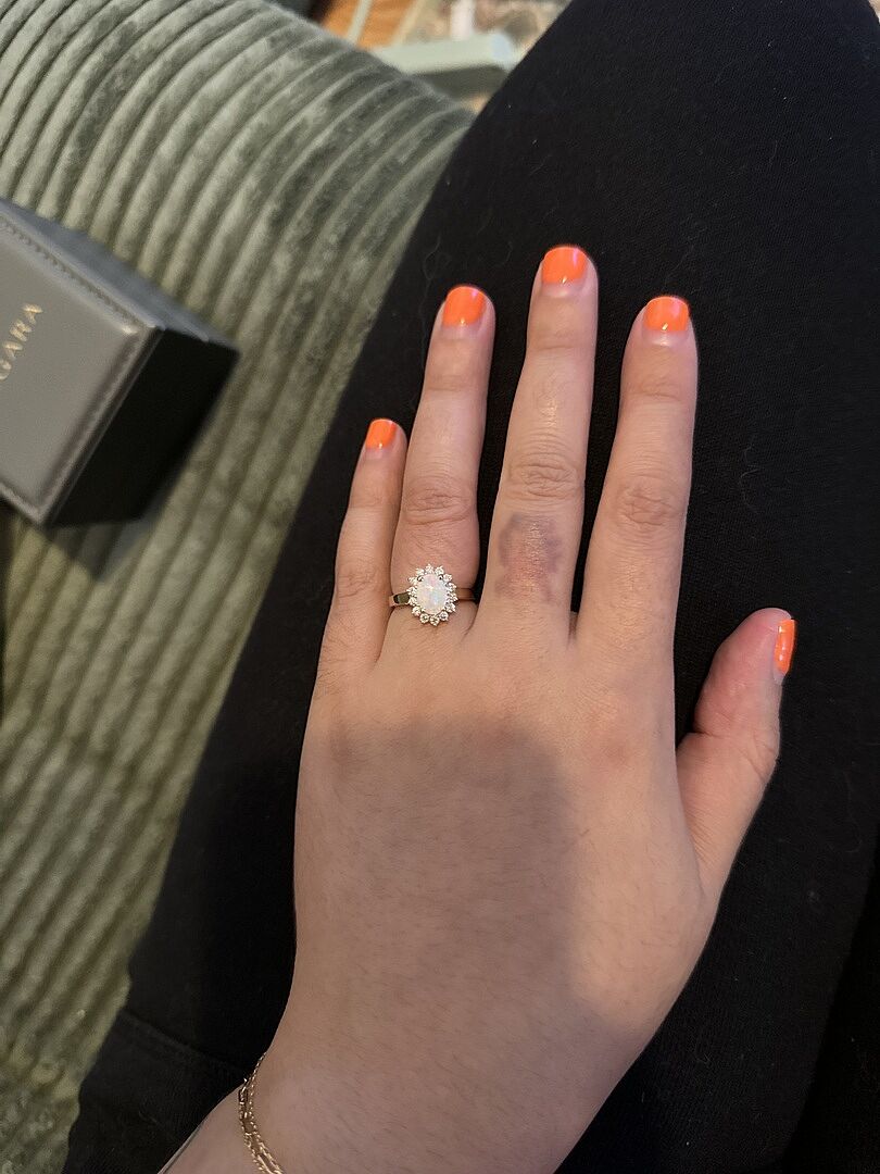 Princess Diana Inspired Opal Ring with Diamond Halo