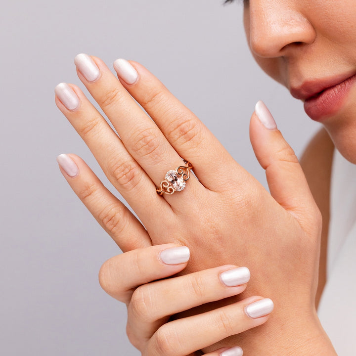 Vintage Inspired Oval Morganite Ring with Diamond Accents