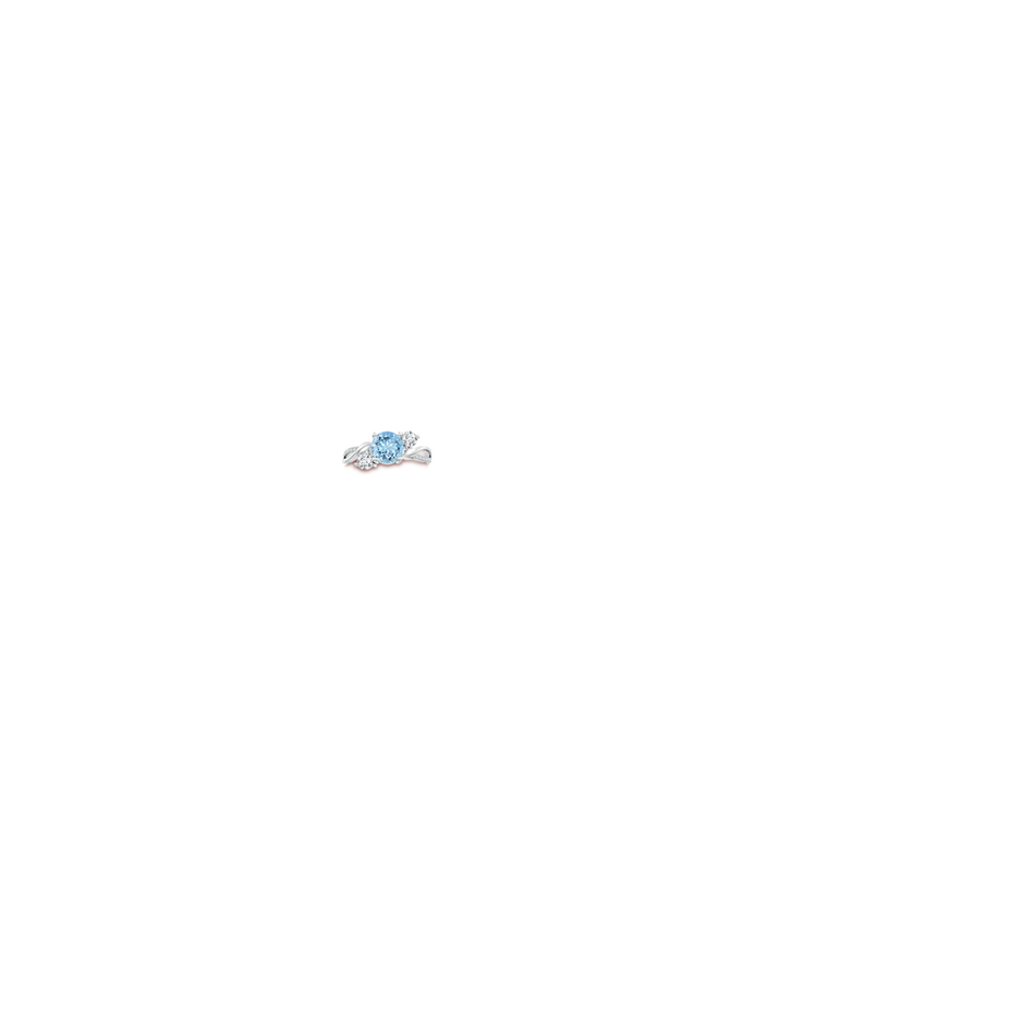 This Aquamarine and Diamond Twisted Vine Engagement Ring by Angara, similar in spirit to its counterpart, is distinguished by a larger 7mm round aquamarine that shines with a pristine icy blue glow. The delicate twisting platinum shank, partially adorned with diamonds and detailed leaf motifs, enhances the romantic narrative of past, present, and future. A perfect symbol of enduring love wrapped in nature-inspired beauty.