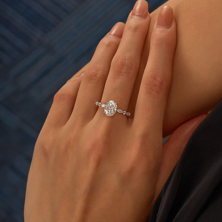 2 Carat Nature Inspired Oval Cut Moissanite Accent Engagement Ring