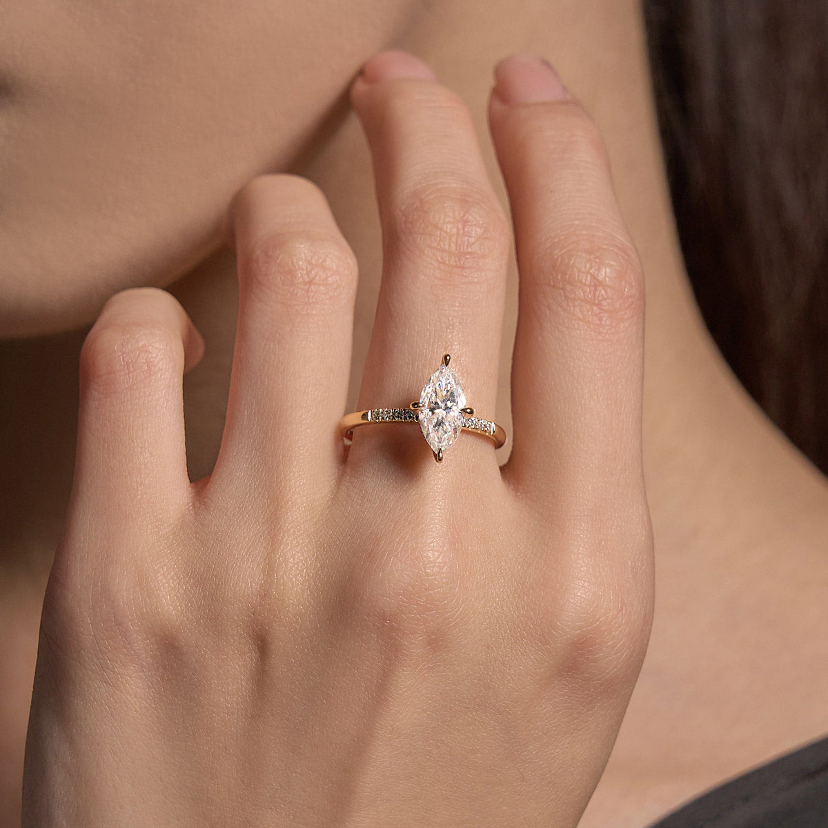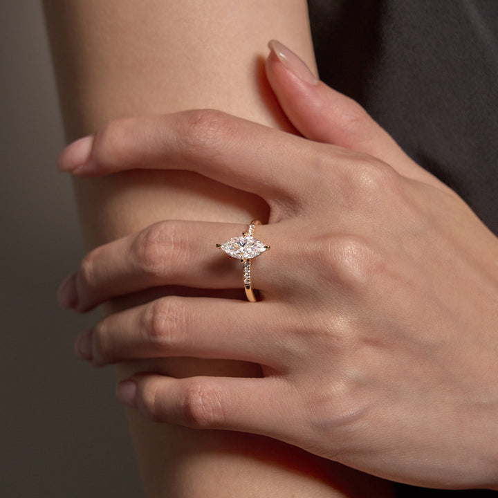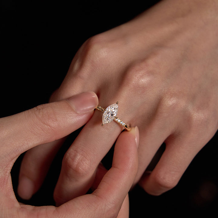 2 Carat Marquise Moissanite Engagement Ring with Pave Band (Celebrity Inspired)