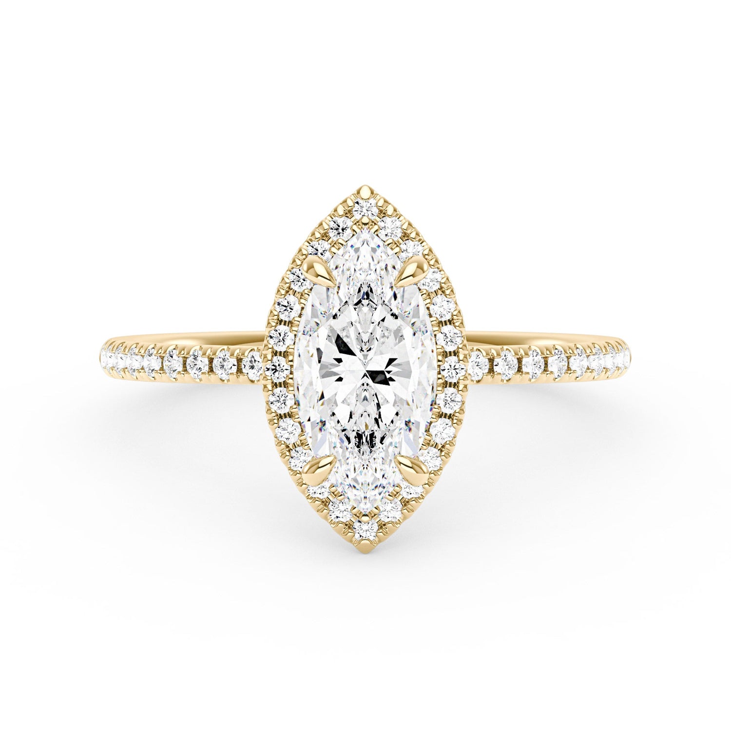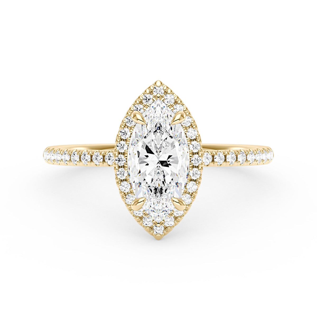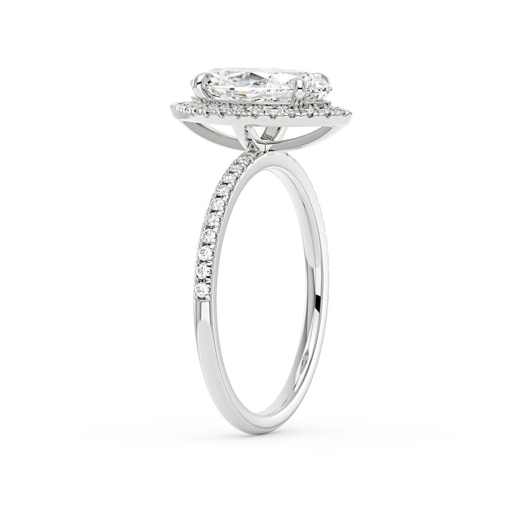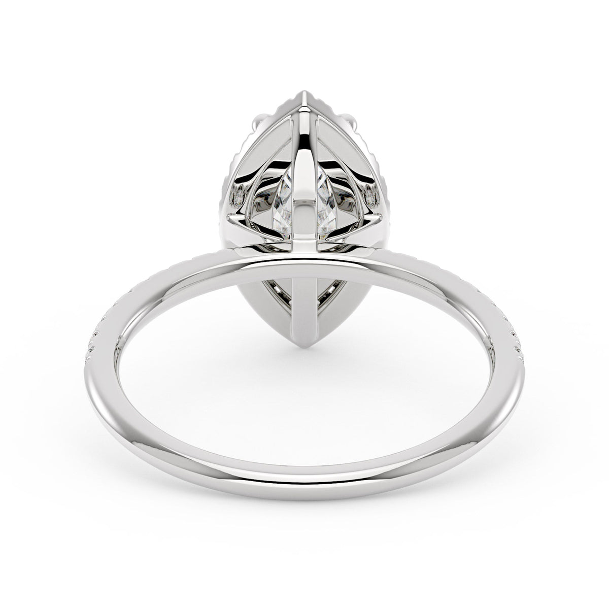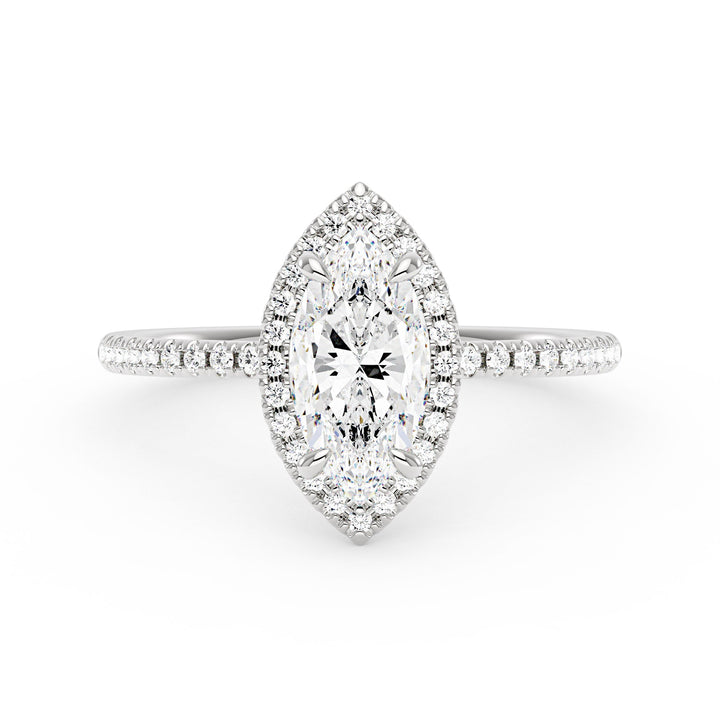 2 Carat Marquise Halo Moissanite Engagement Ring with Pave Band