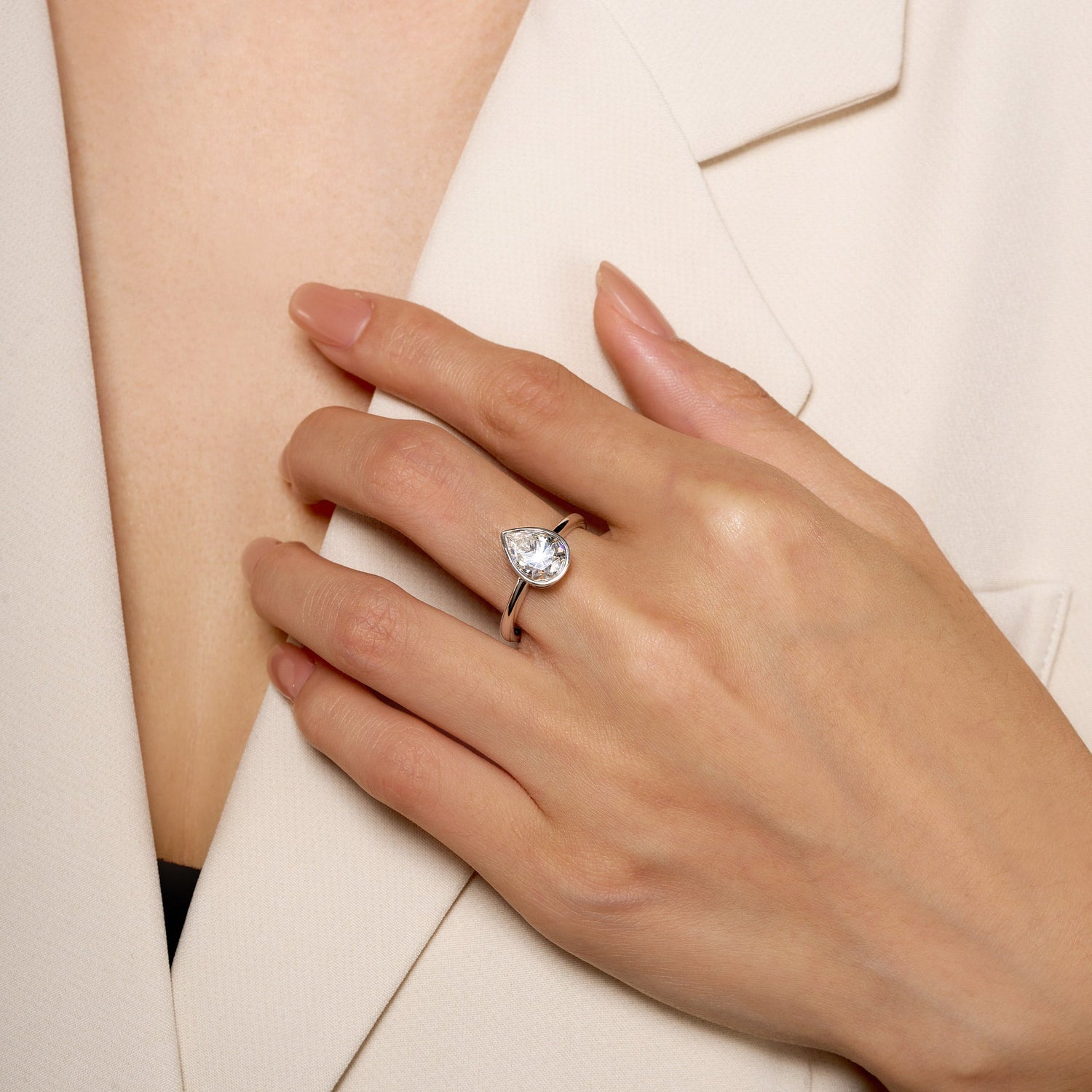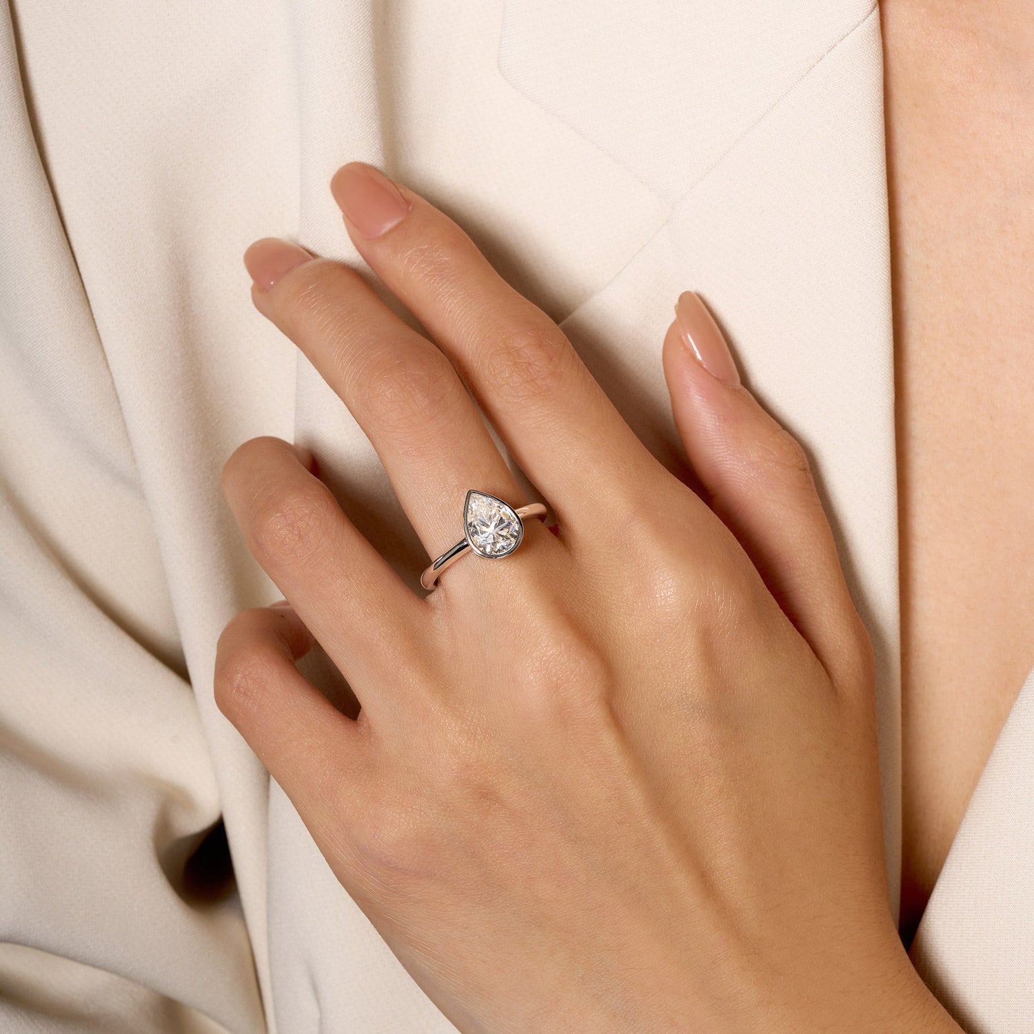 2 Carat Pear-Shaped Moissanite Bezel Ring
