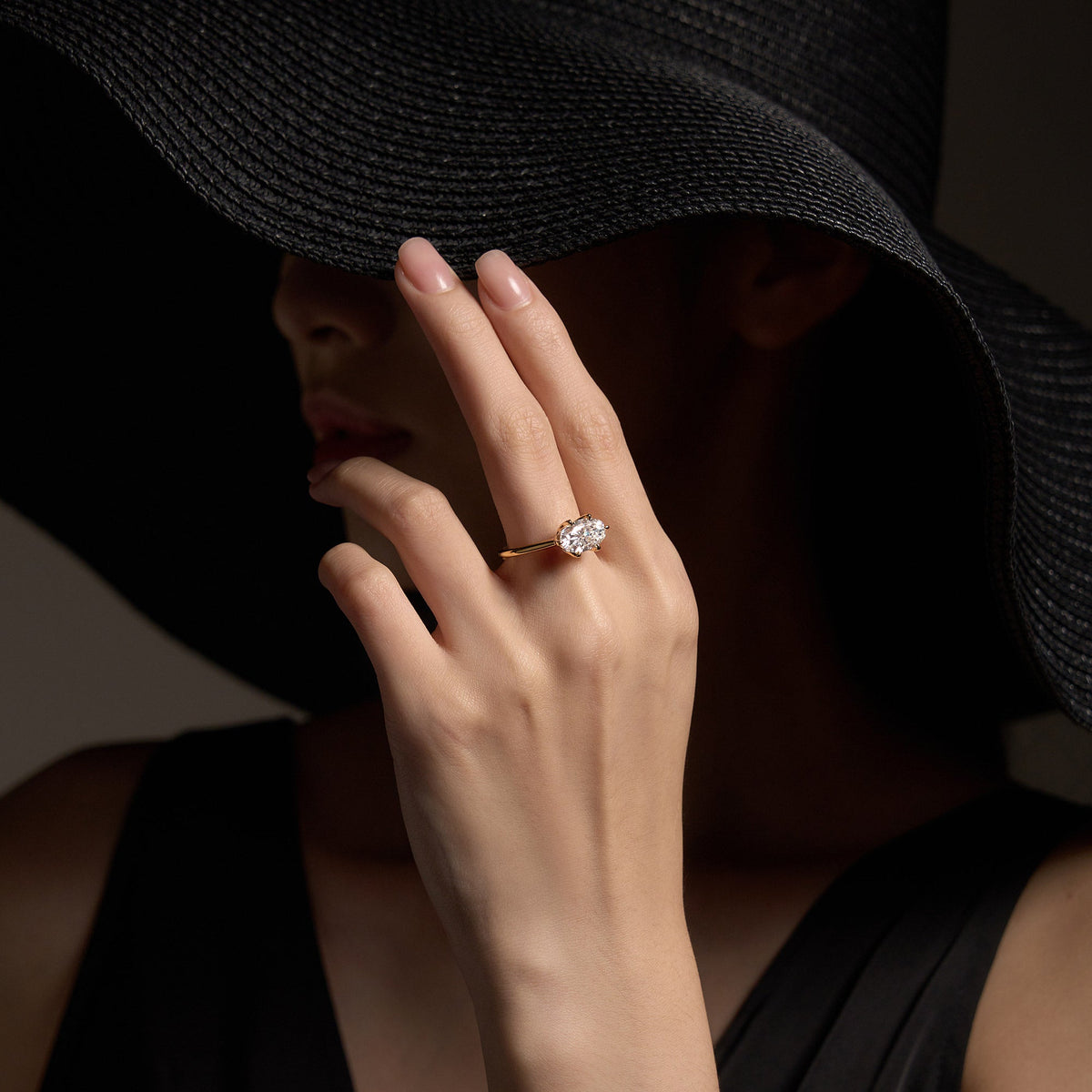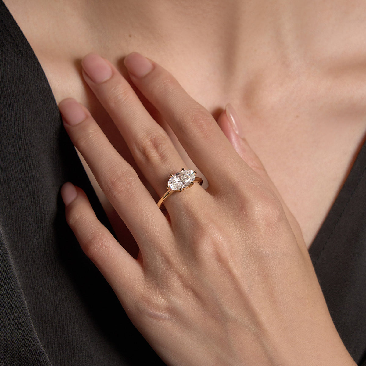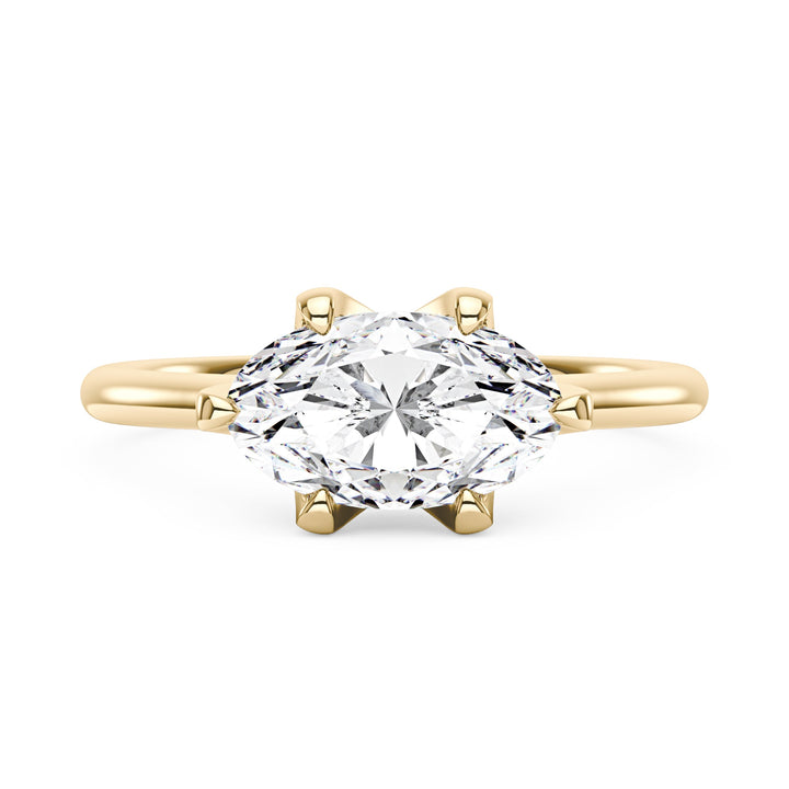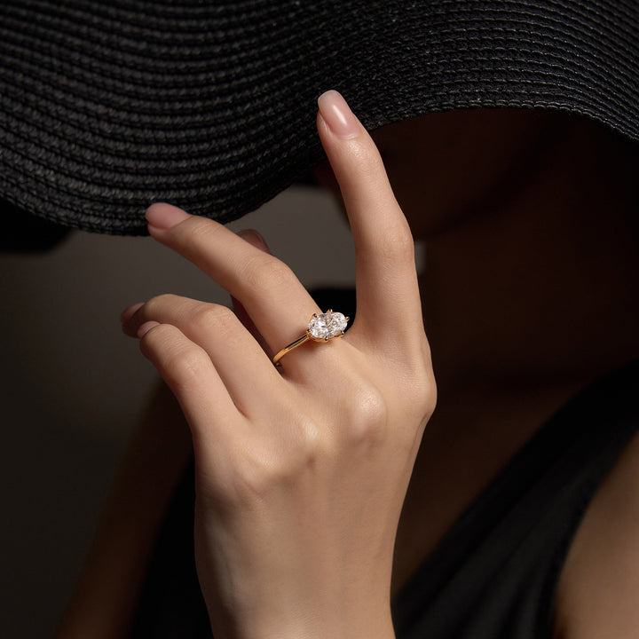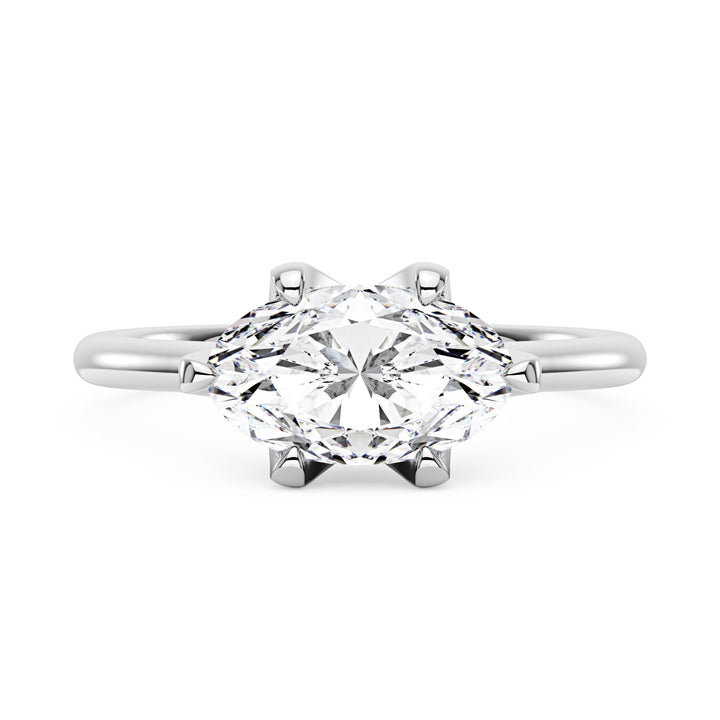 This 4 Carat Oval Moissanite East West Engagement Ring by EPI Jewelry offers a modern twist on classic elegance with its horizontally set elongated oval moissanite. The bold east-west orientation adds a contemporary edge, perfect for the bride who values distinctive, avant-garde style. This ring exudes sophistication and redefines timeless beauty with its unique silhouette.