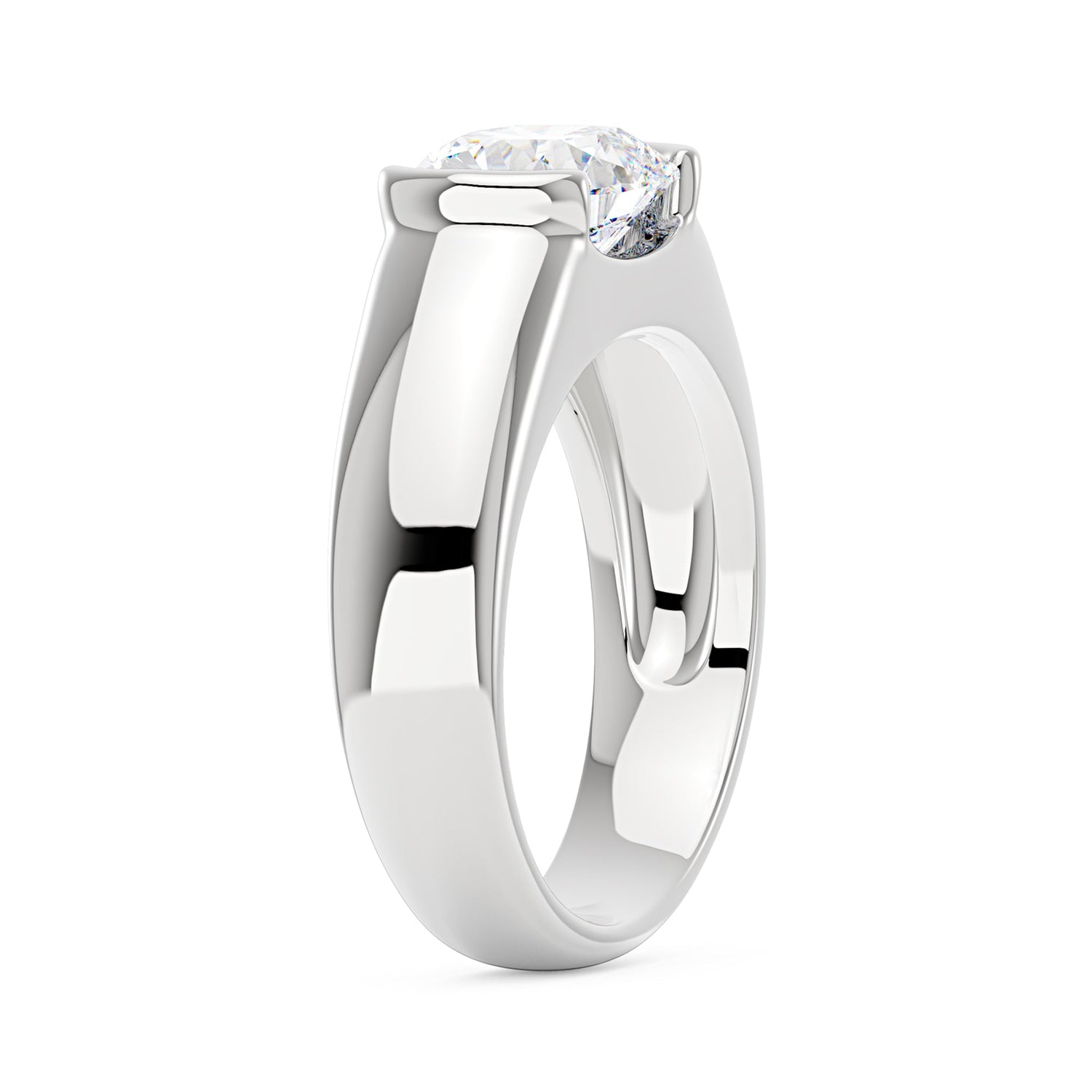 Crafted in 18K White Gold Vermeil over S925 Sterling Silver. Center stone is a 4 ct elongated cushion moissanite (8 x 10 mm). Shank width 5.9 mm, base width 4.5 mm, depth 1.8 mm, base depth 1.6 mm.