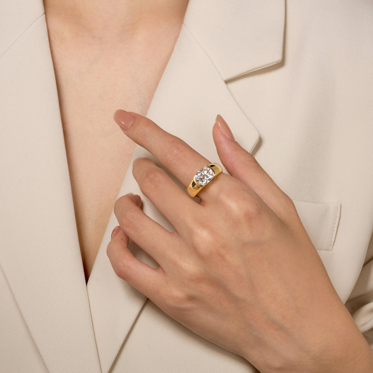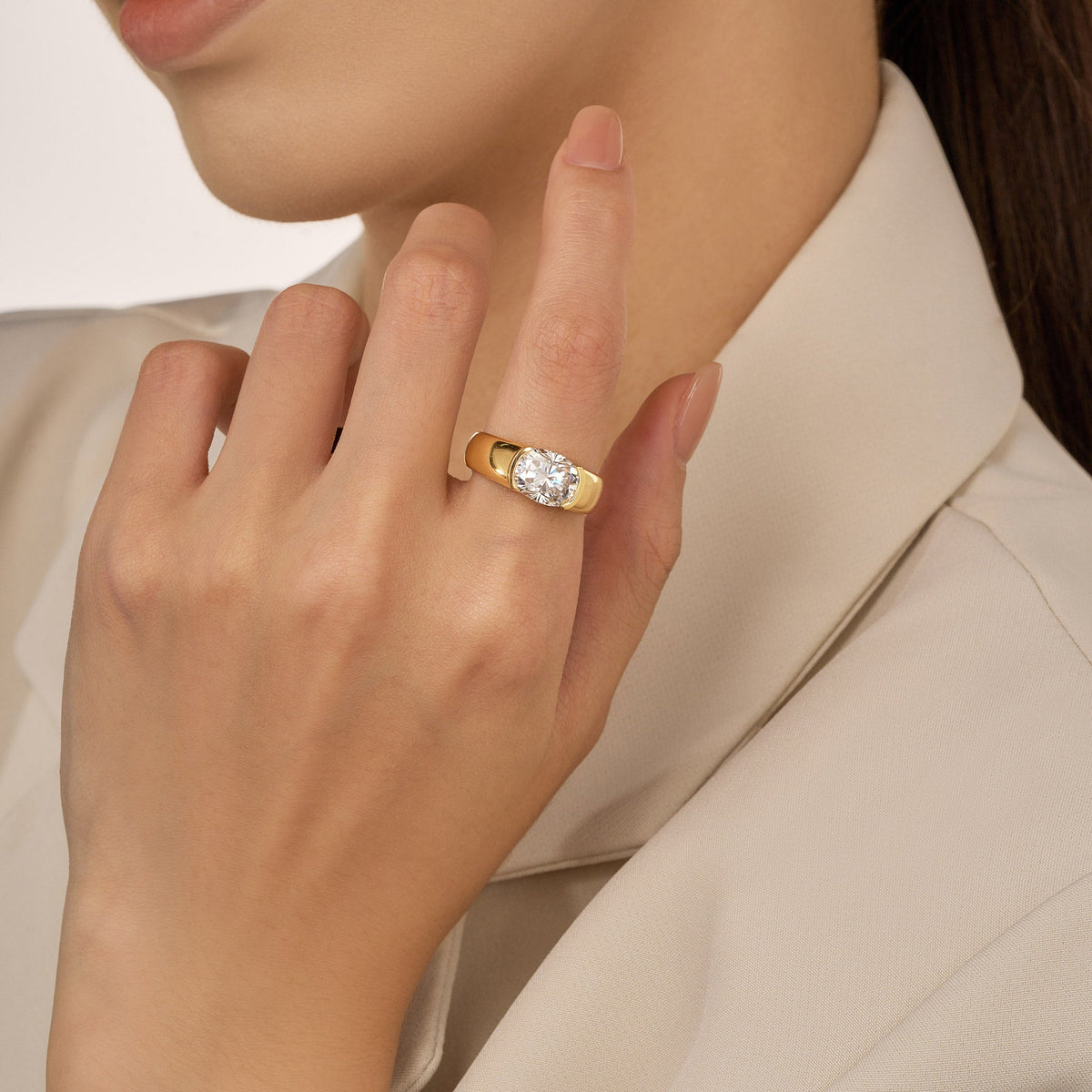 This 4 Carat Elongated Cushion Moissanite Sideways Chunky Ring by EPI Jewelry is a bold statement of modern luxury. Featuring a large cushion-cut moissanite set sideways atop a chunky band, it radiates unparalleled brilliance and contemporary flair. Designed for confident women who embrace standout sophistication, this piece redefines everyday elegance.
