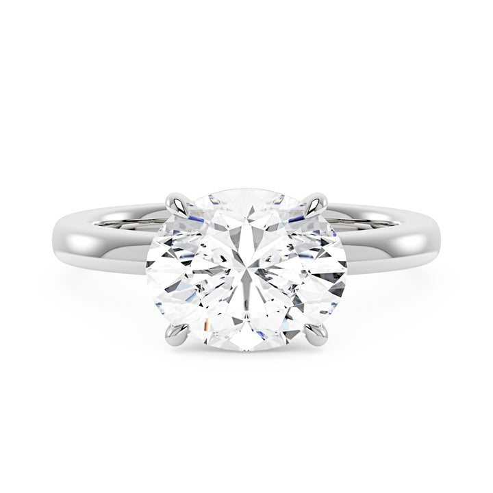 This 4 Carat Oval Moissanite Solitaire Engagement Ring by EPI Jewelry features a breathtaking sideways oval moissanite, renowned for its exceptional brilliance and timeless elegance. Set with four delicate prongs on a polished band, it allows maximum light to amplify the stone’s sparkle. This piece embodies refined beauty and enduring style, making it the quintessential choice for a sophisticated engagement ring that balances classic charm with modern luxury.