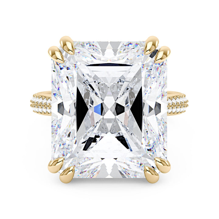35 Carat Radiant Moissanite Ring with Pave Band in 14K Gold