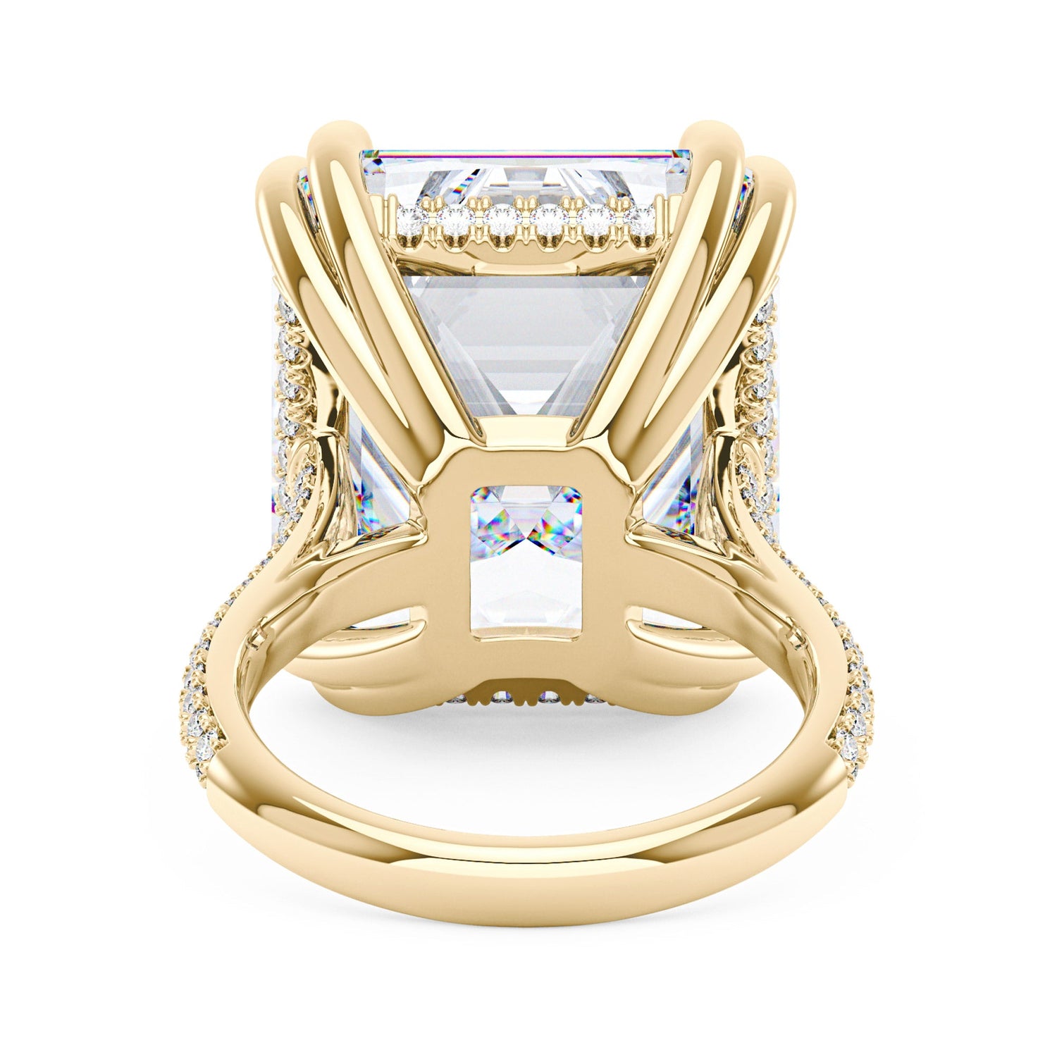 This 35 Carat Radiant Moissanite Ring with Pave Band in 14K Gold by EPI Jewelry is a monumental showstopper that commands attention. Featuring a colossal radiant-cut moissanite centerpiece surrounded by a half pavé band of round stones, it embodies opulence, grandeur, and luxury—an unforgettable heirloom for extraordinary occasions.