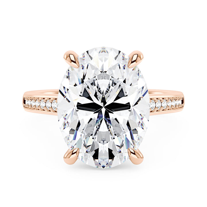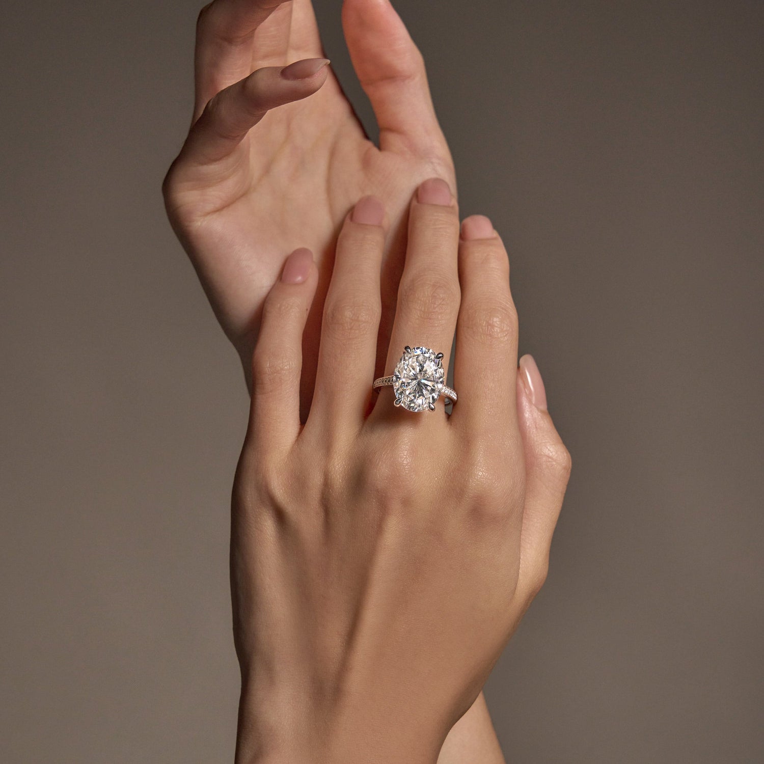 14 Carat Oval Shaped Moissanite Paved Engagement Ring in 14K Gold