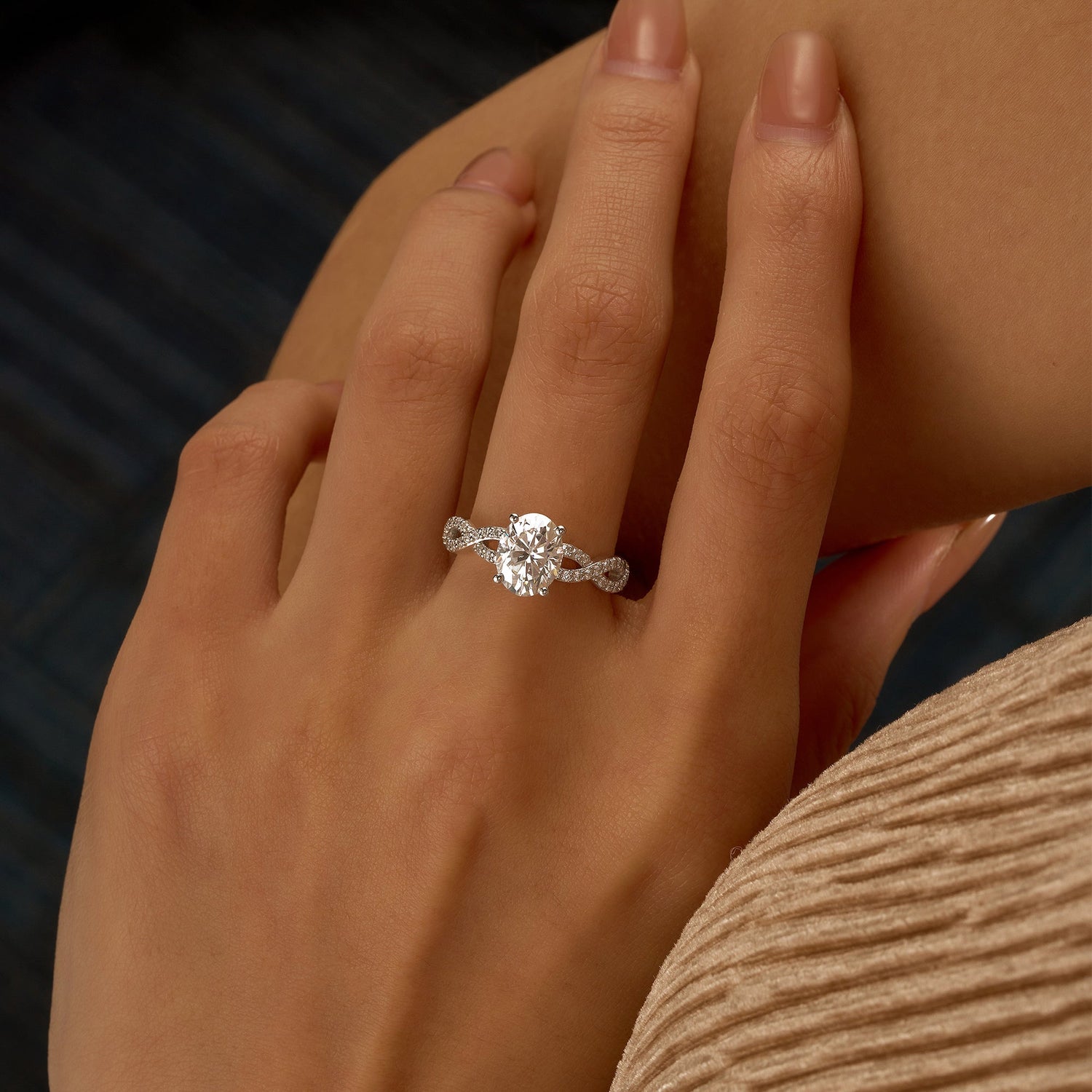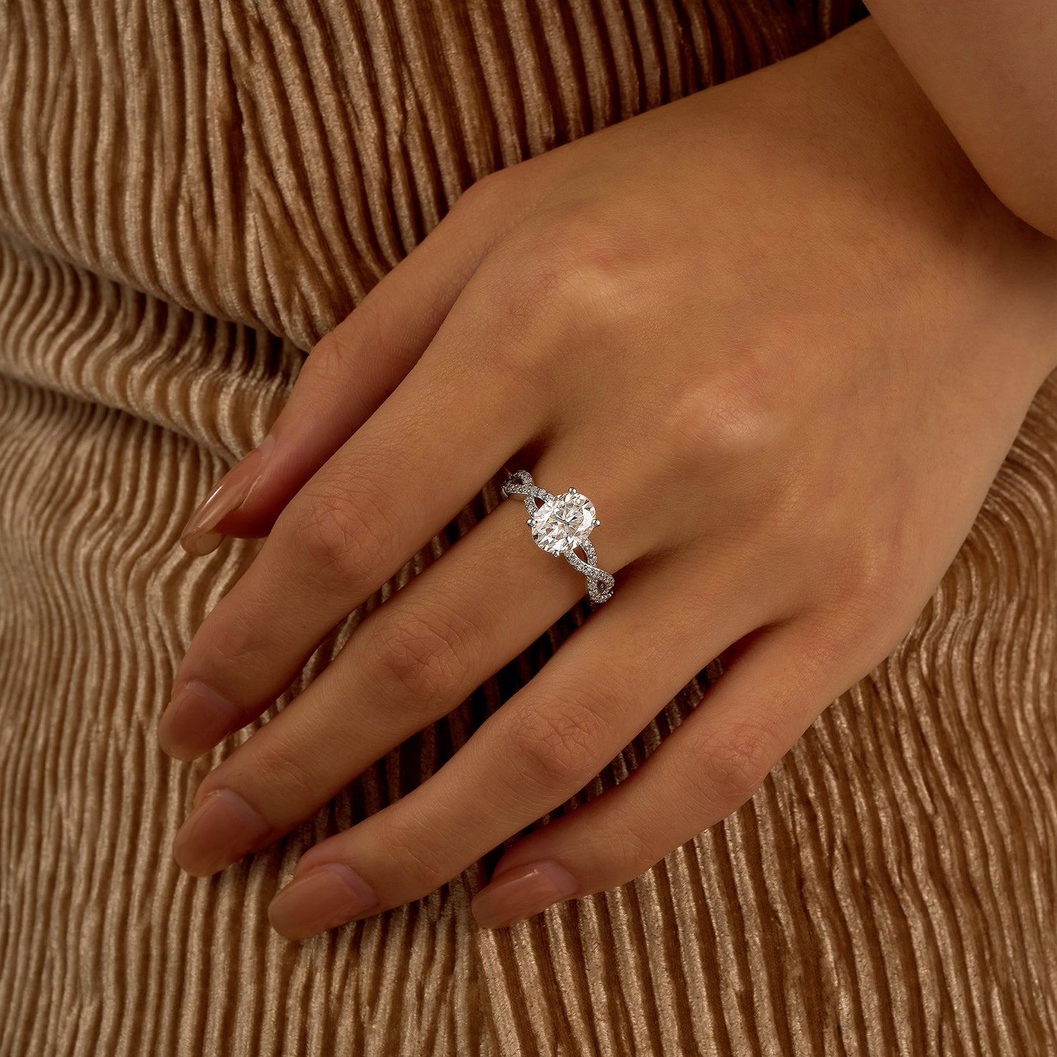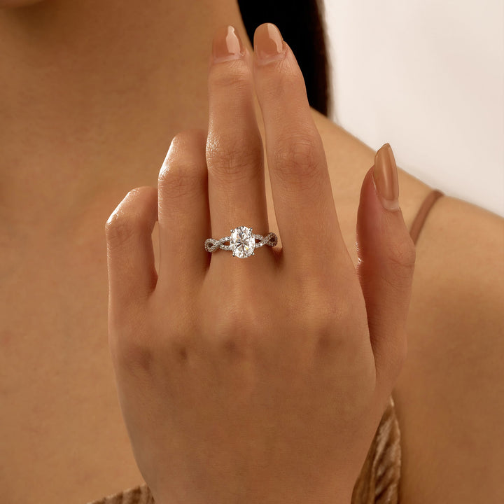 2 Carat Oval Moissanite Ring with Pavé Infinity Band