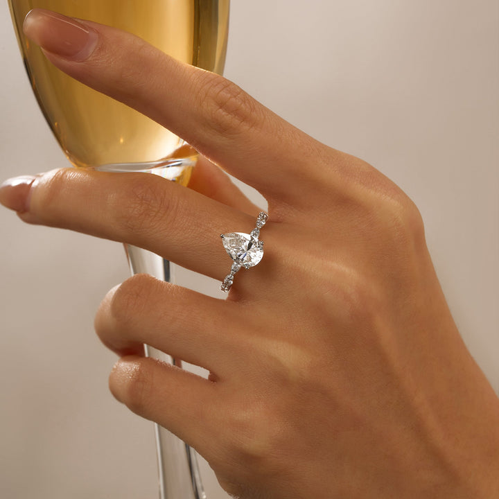 2 Carat Elegant Pear Shape Moissanite Engagement Ring