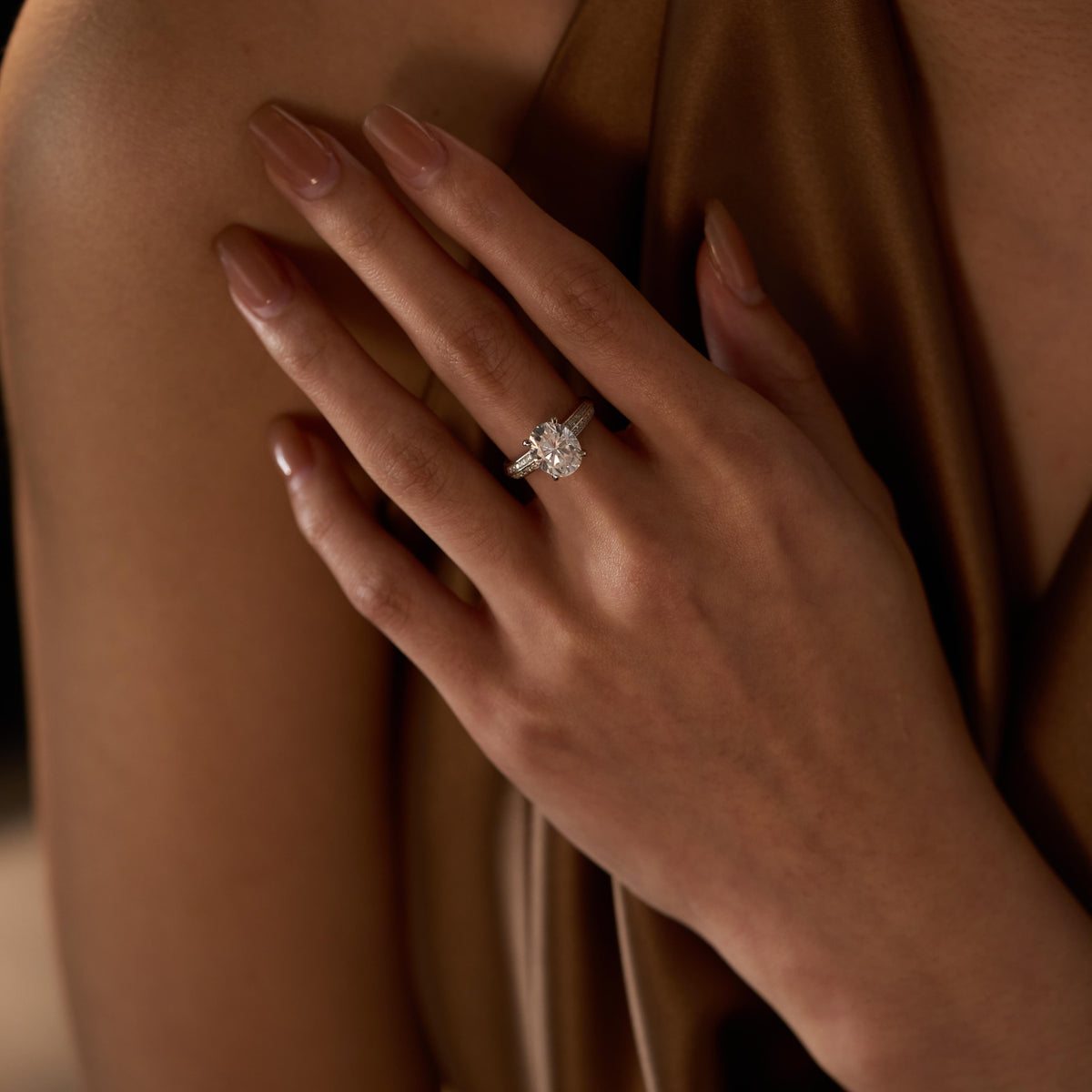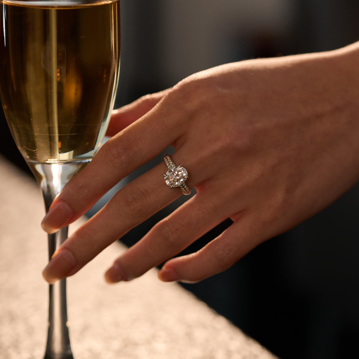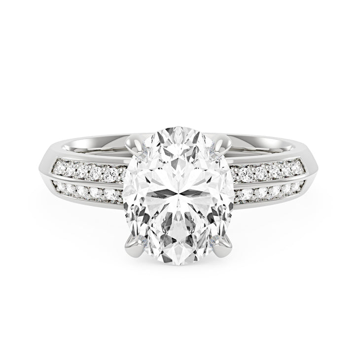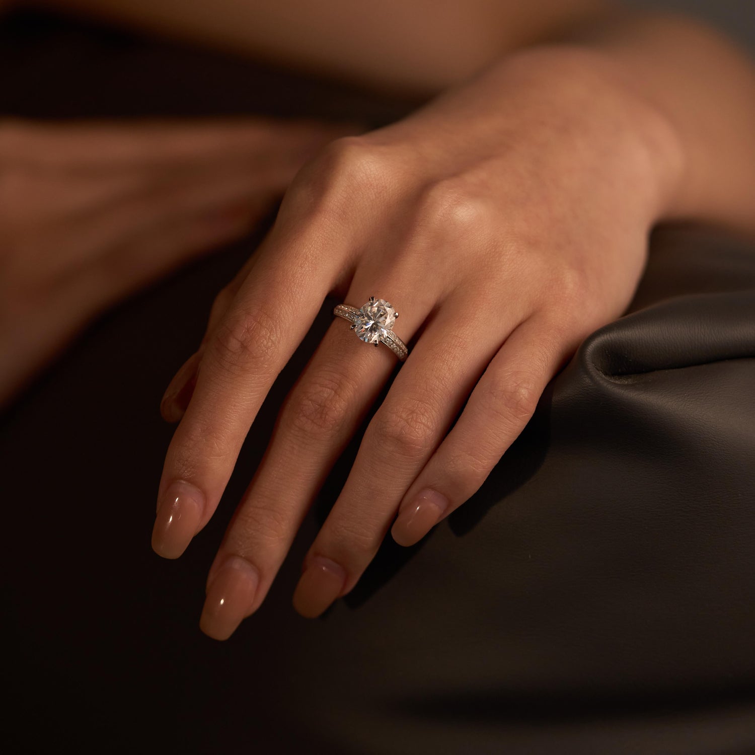 3 Carat Oval Moissanite Engagement Ring with Pavé Double Row Band