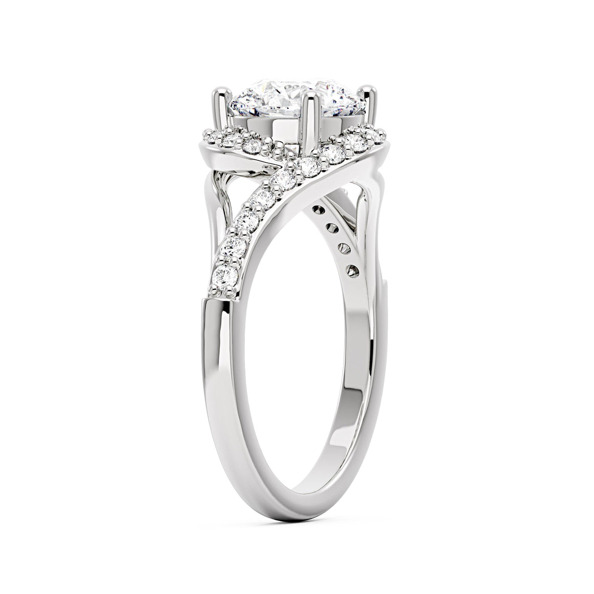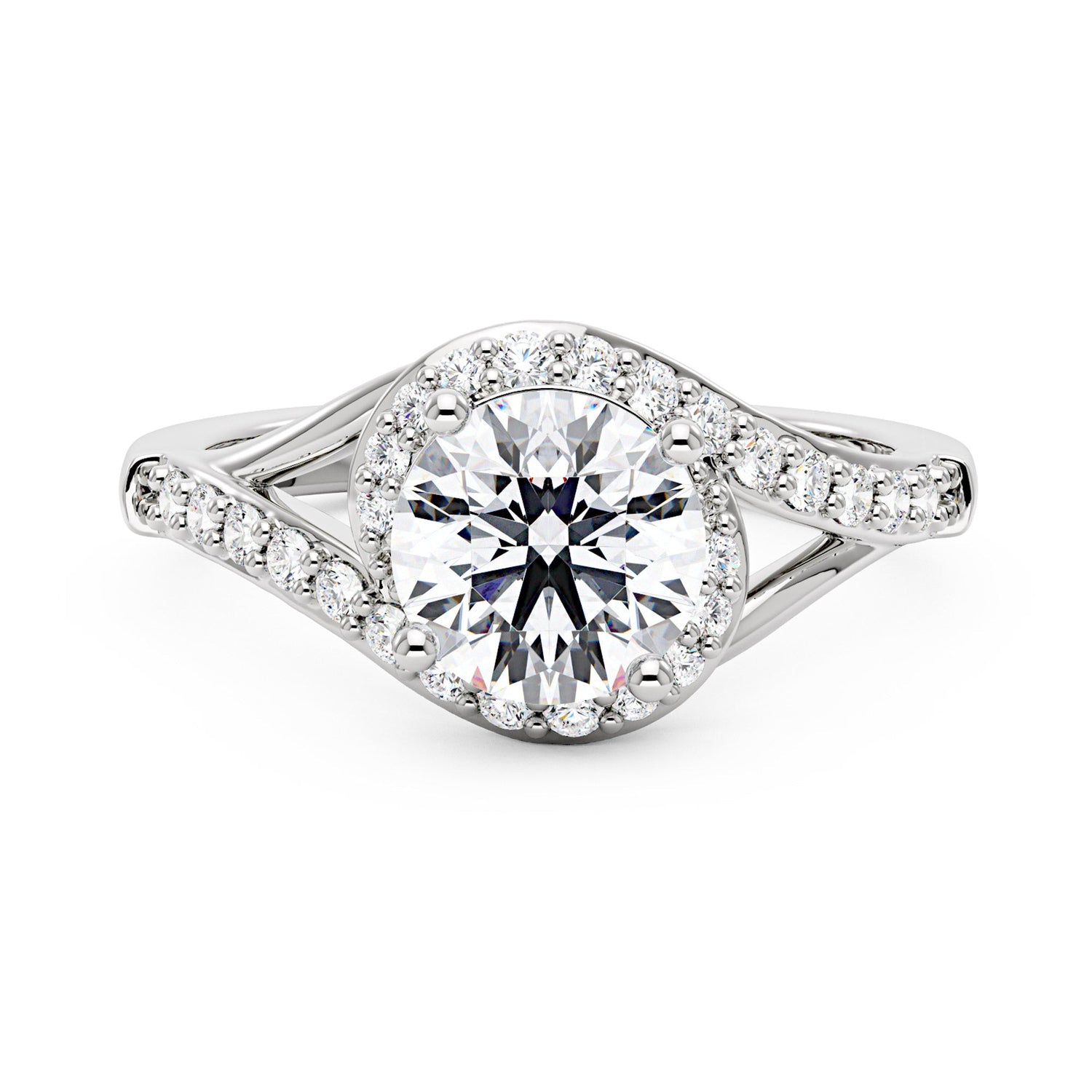 1.5 Carat Starlight Halo Moissanite Ring with Twist Pavé Band