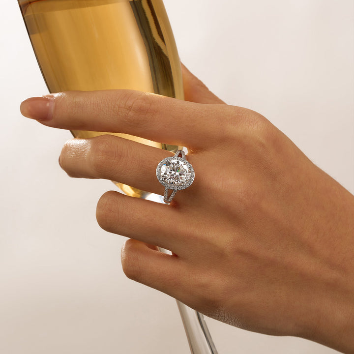 5 Carat Halo Moissanite Engagement Ring with Pavé Band