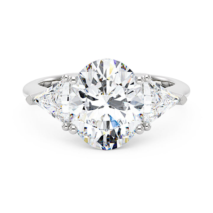 5 Carat Modern Romance Oval Triangle Moissanite Trilogy Ring (Celebrity Inspired)