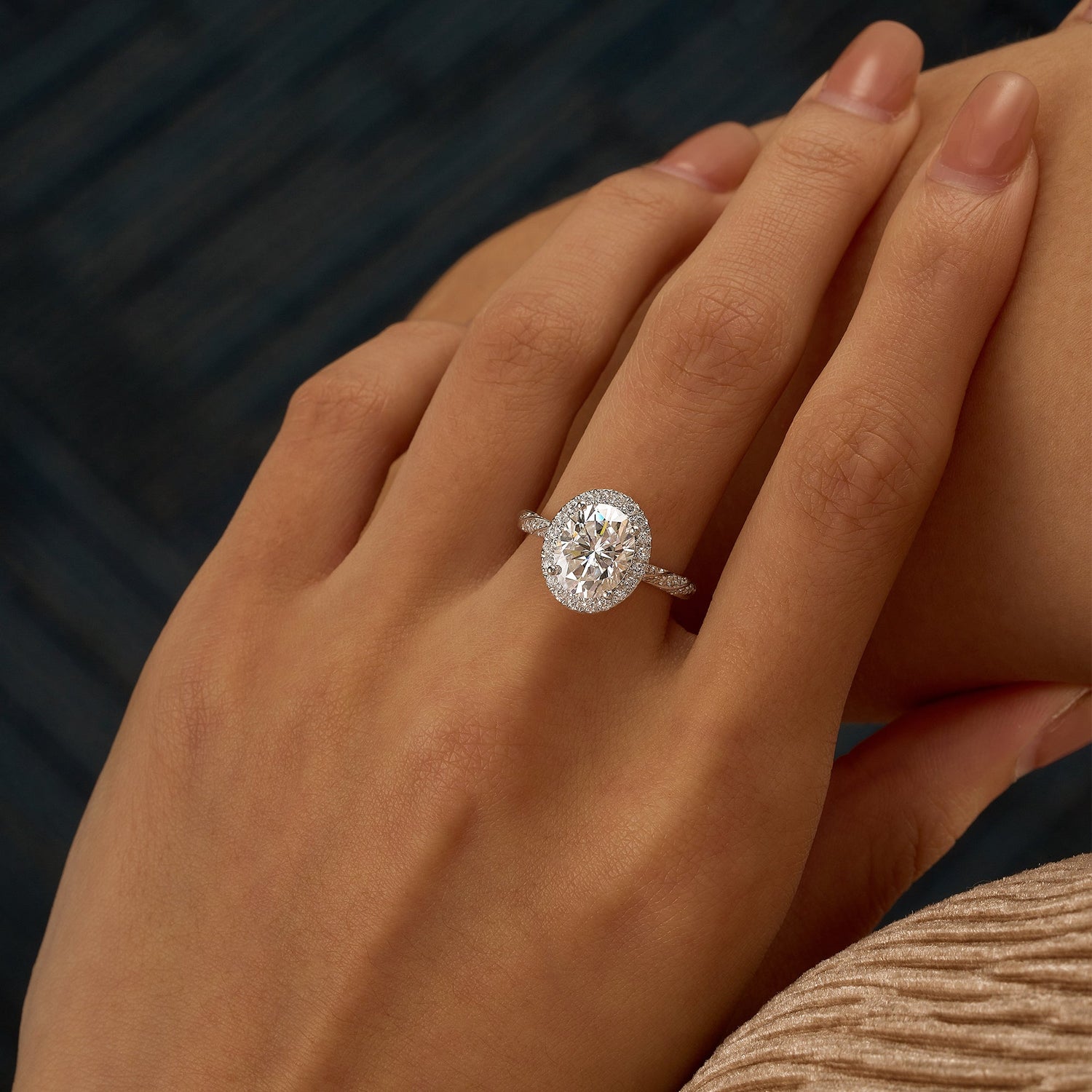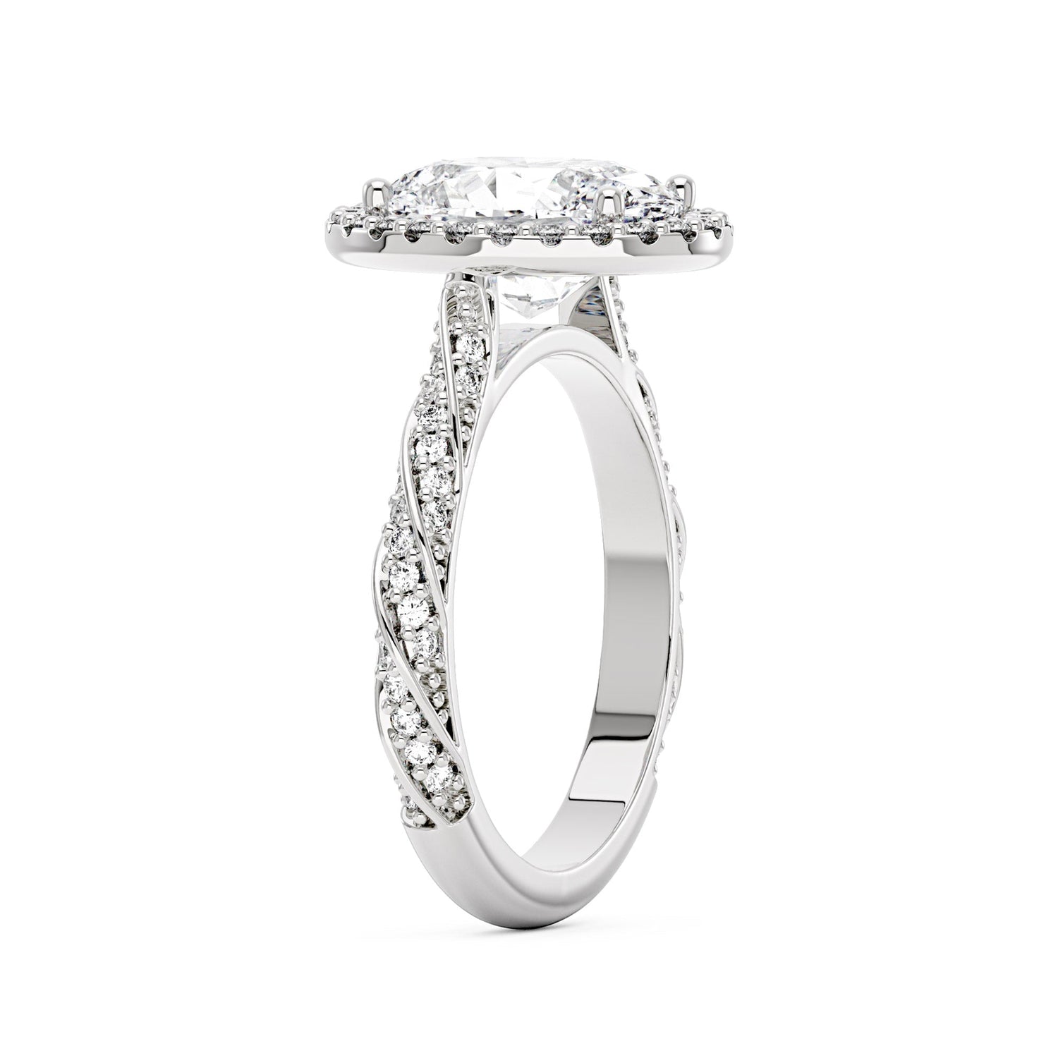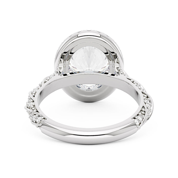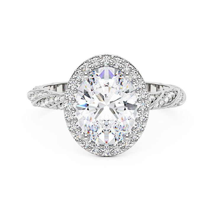 3 Carat Oval Halo Moissanite Engagement Ring with Twisted Pavé Band