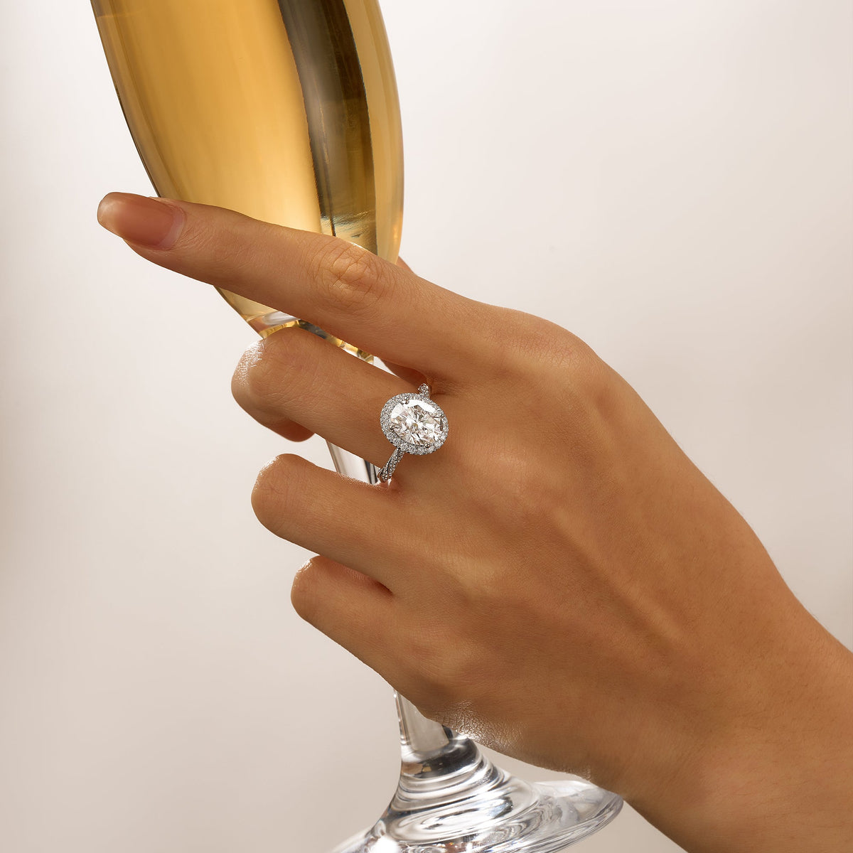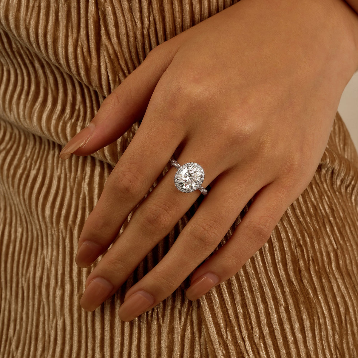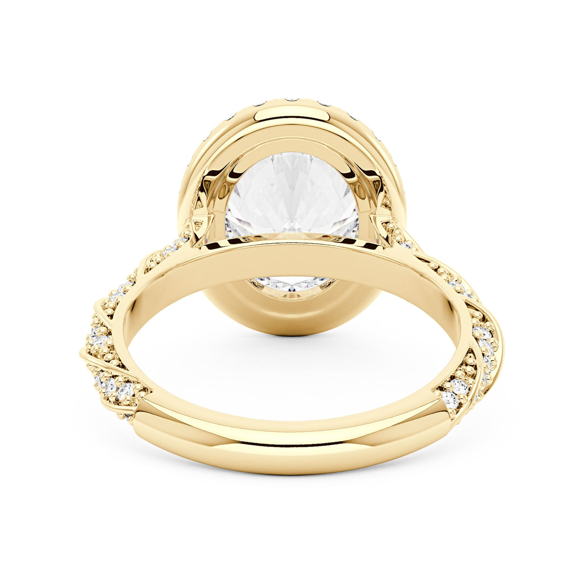 3 Carat Oval Halo Moissanite Engagement Ring with Twisted Pavé Band