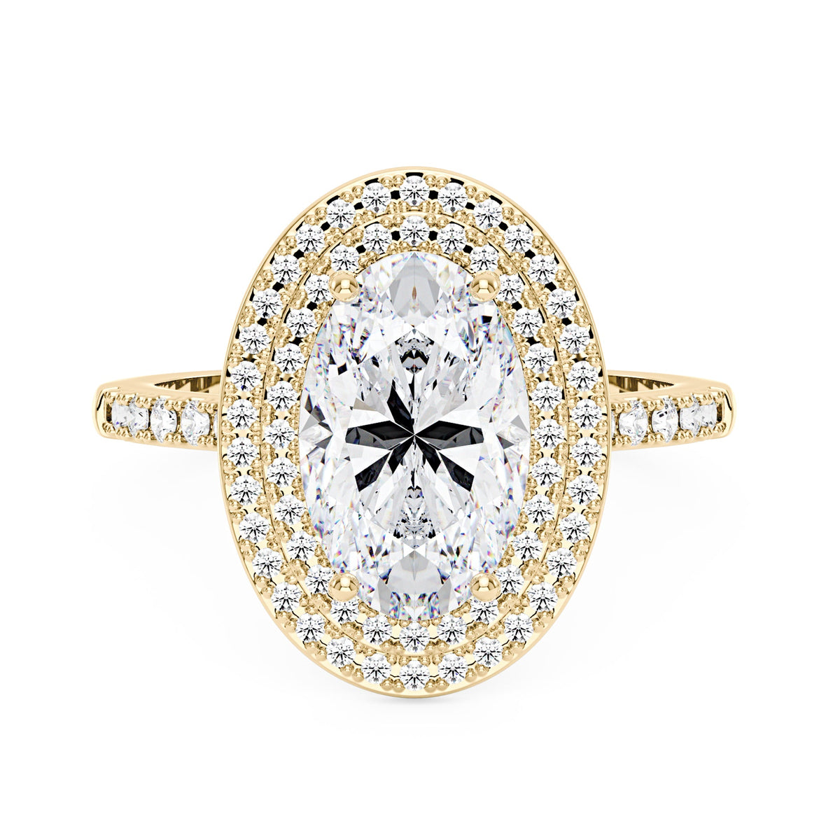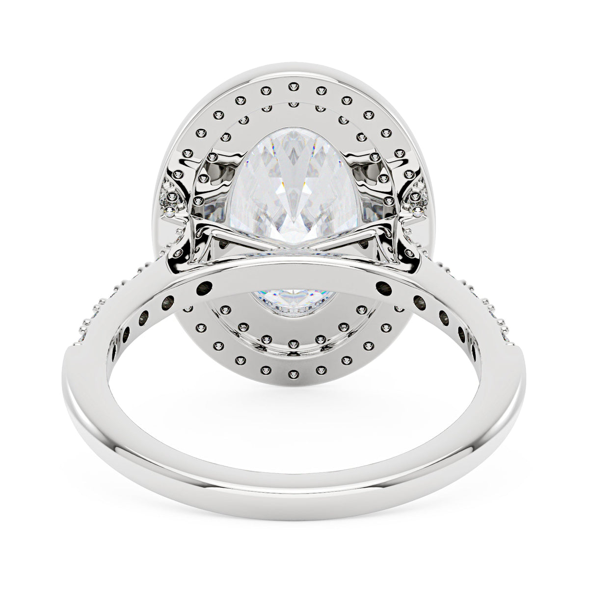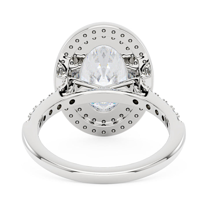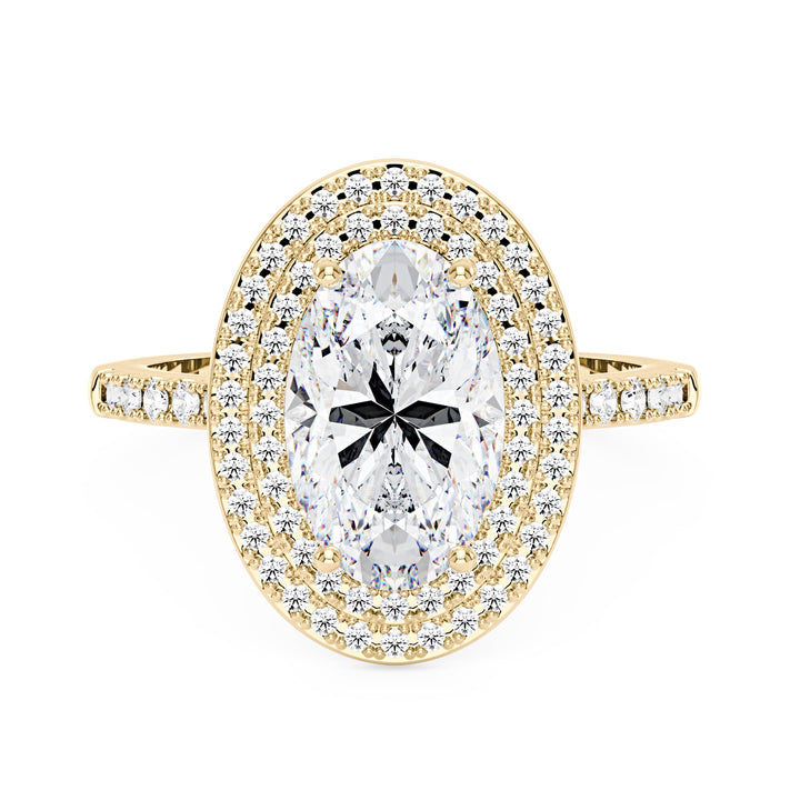 4 Carat Art Deco Oval Cut Moissanite Pavé Double Halo Ring