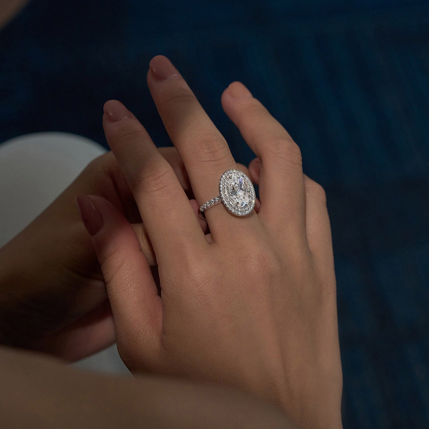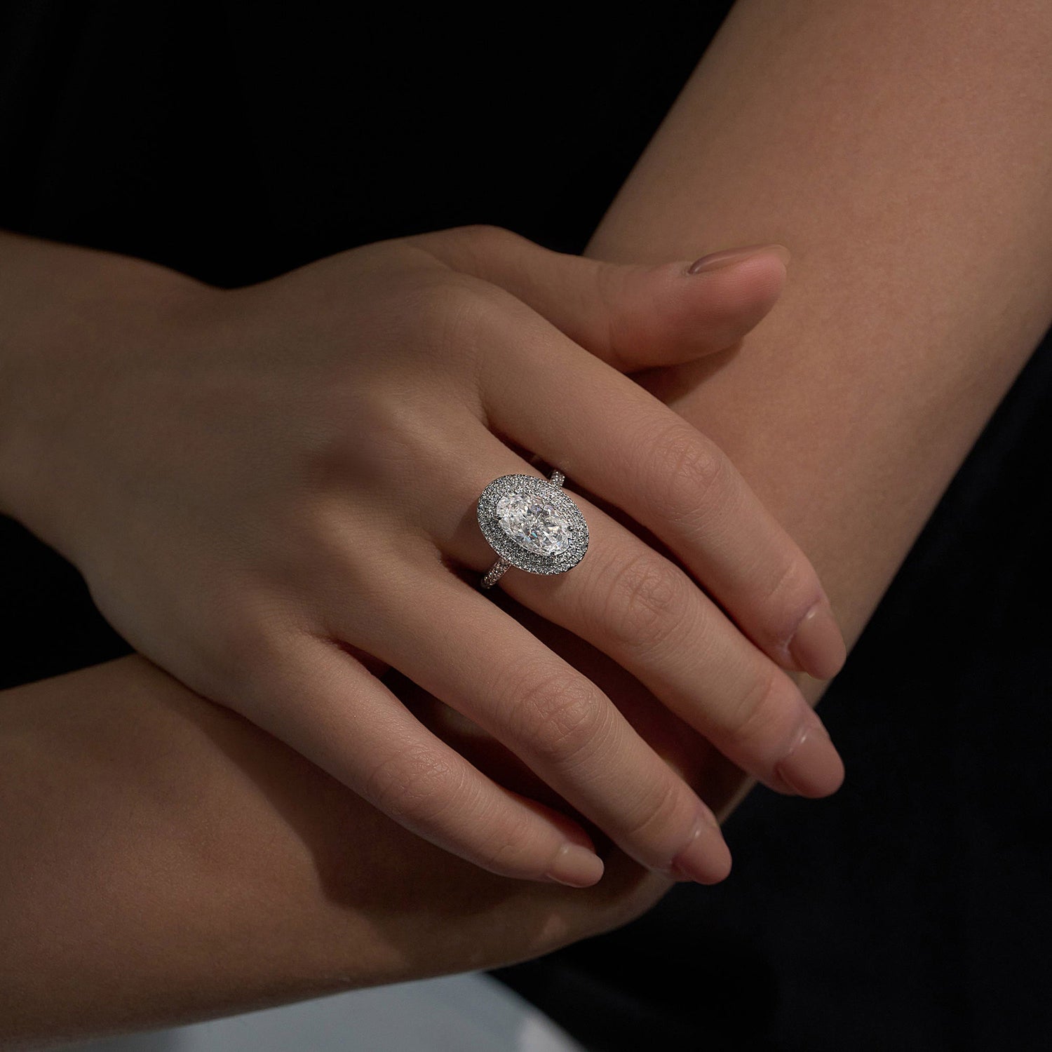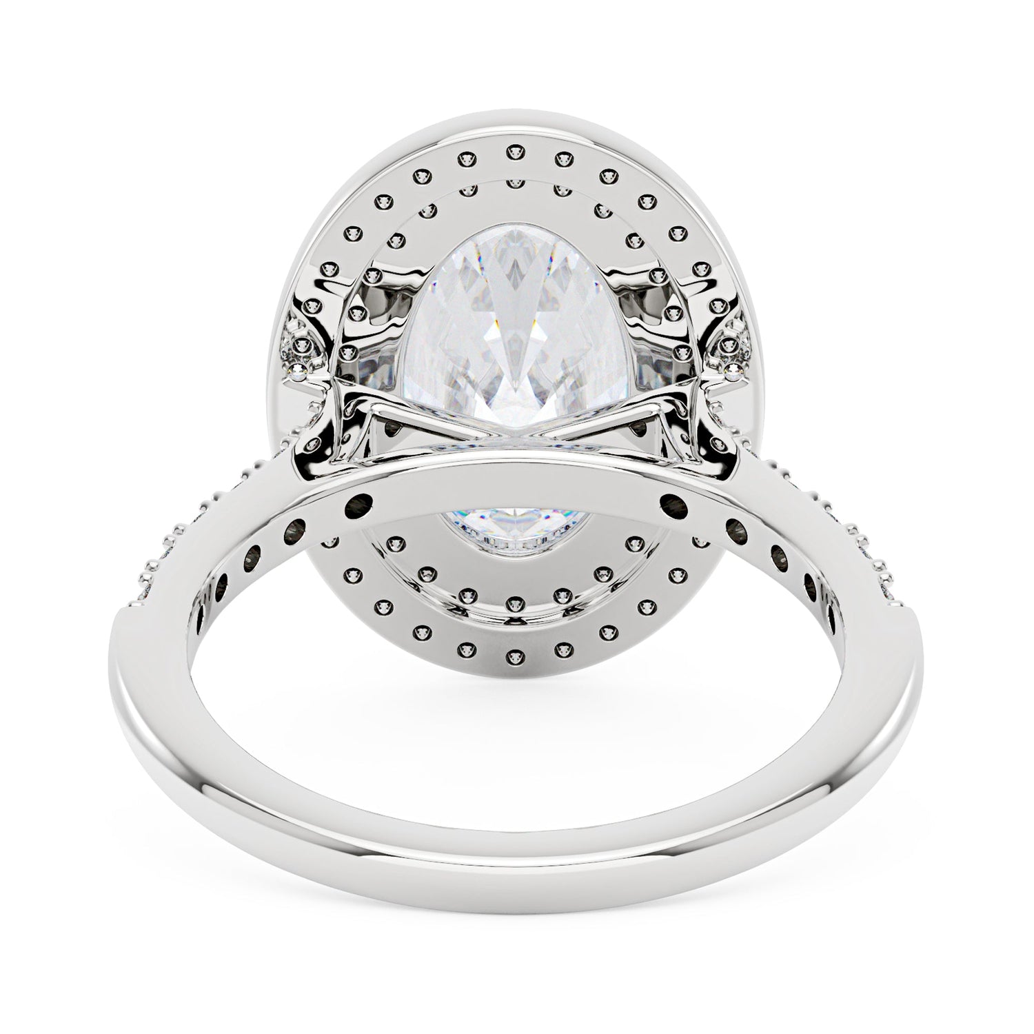 4 Carat Art Deco Oval Cut Moissanite Pavé Double Halo Ring