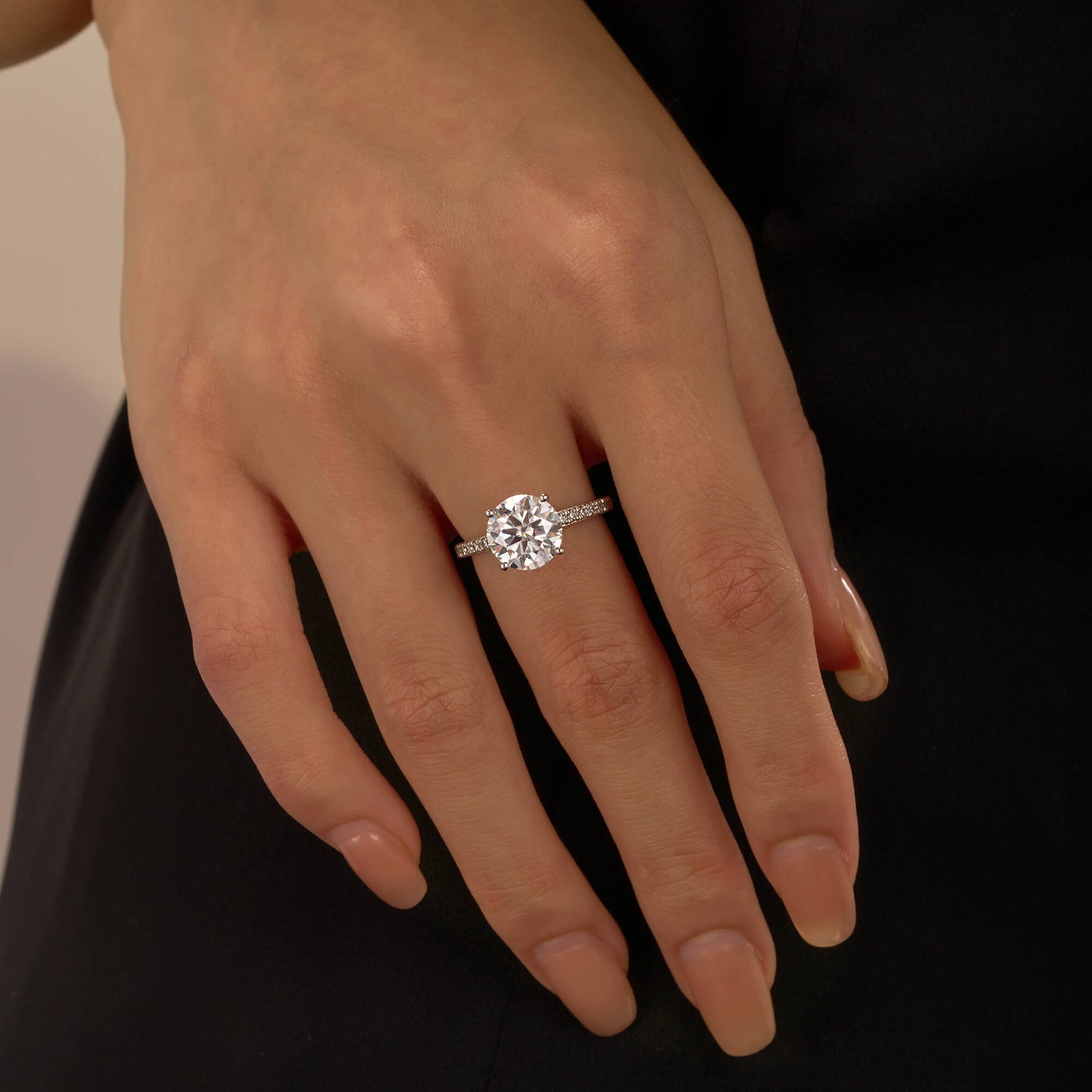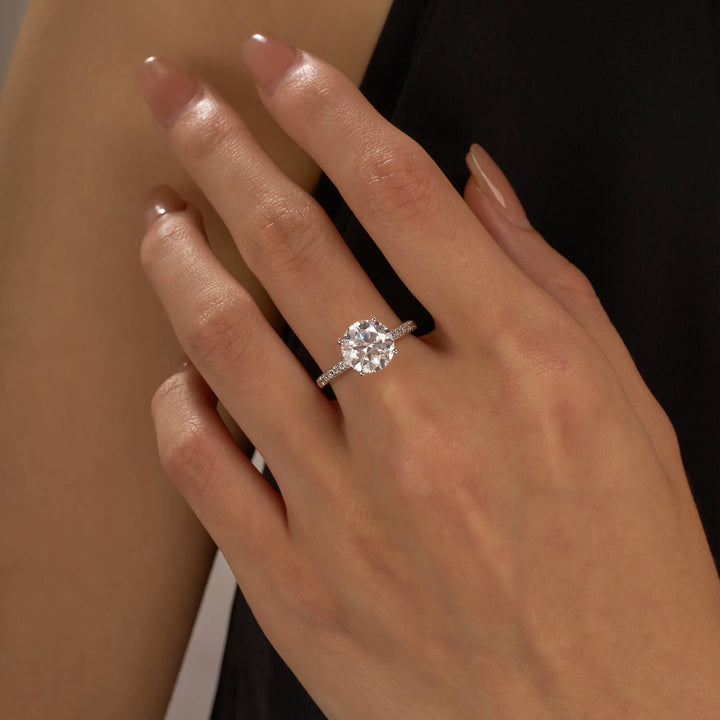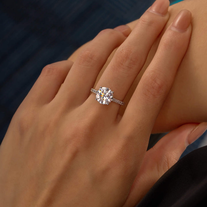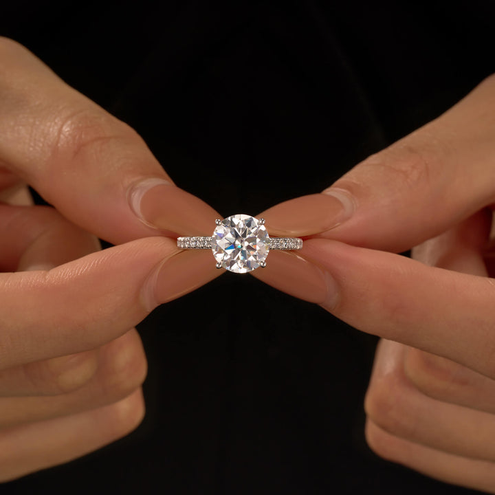 3 Carat Dazzling Round Moissanite Pave Band Engagement Ring