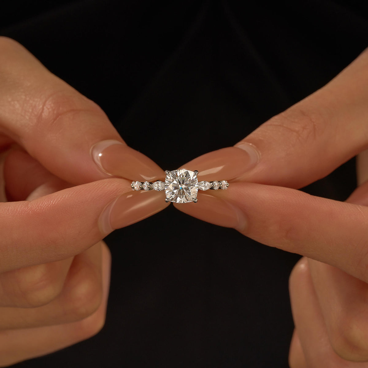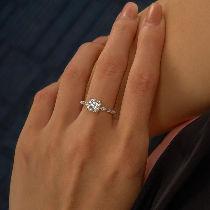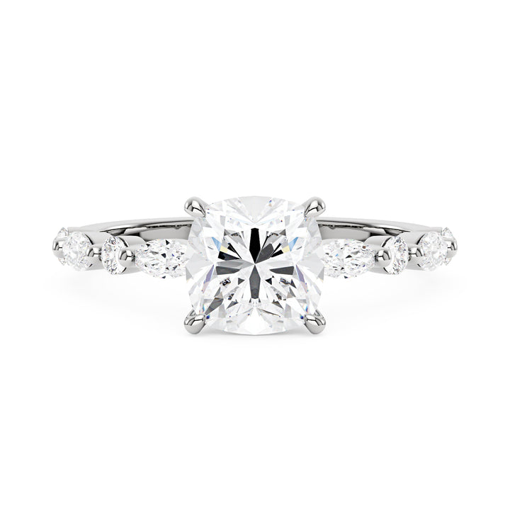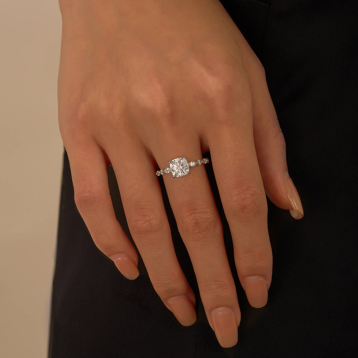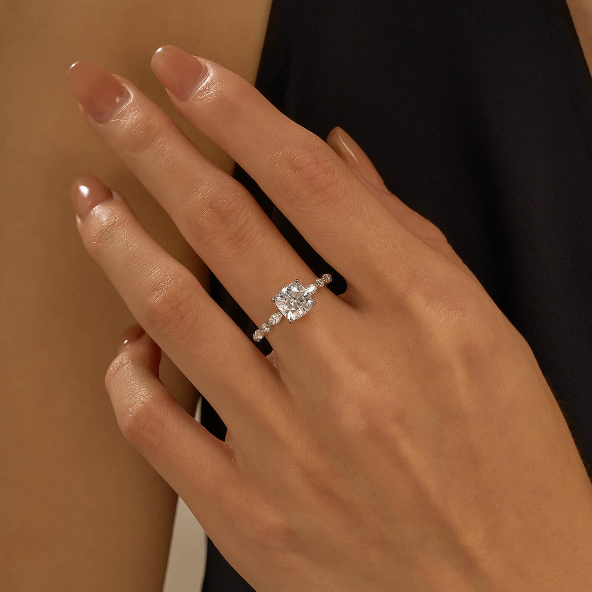 2 Carat Cushion Cut Moissanite Accented Band Engagement Ring
