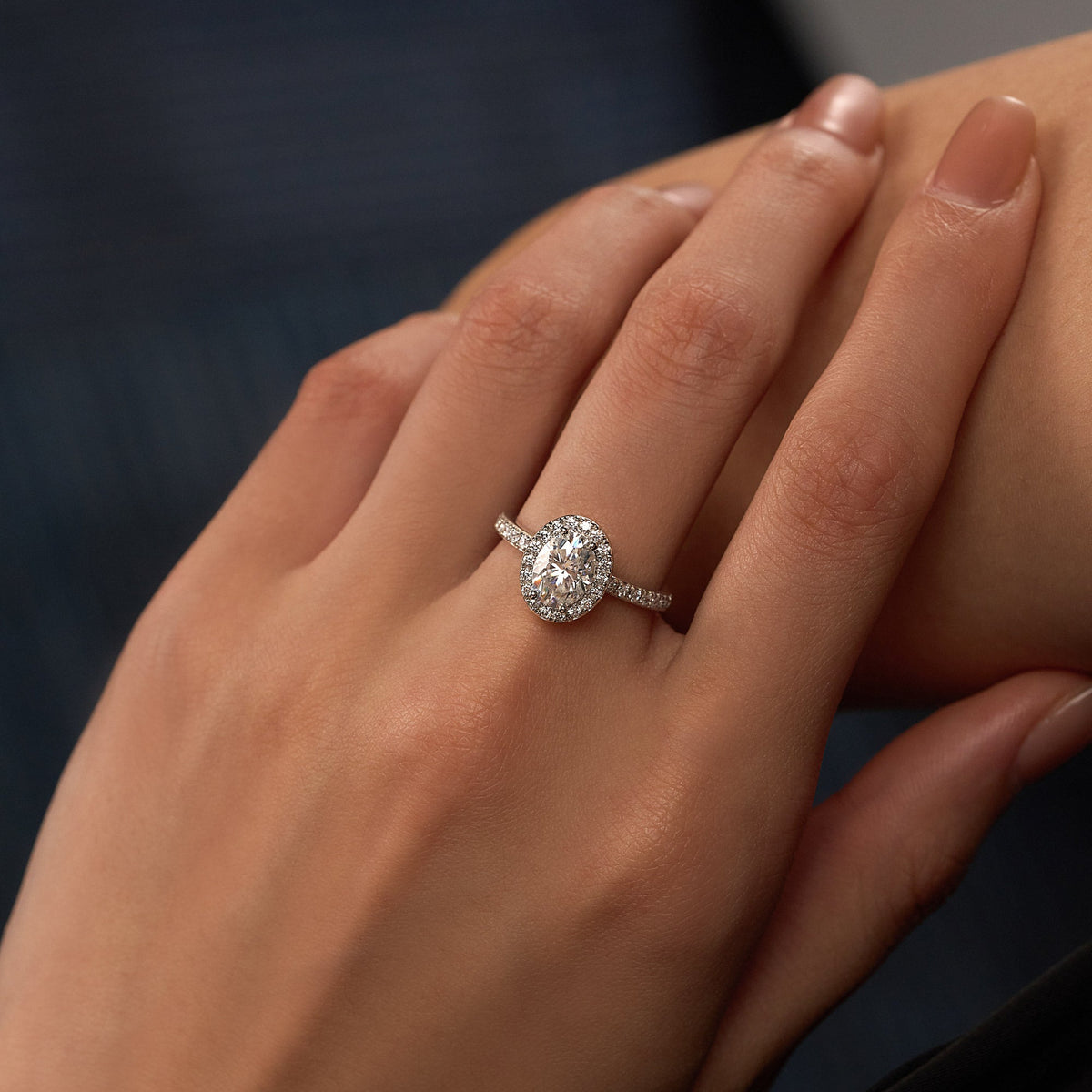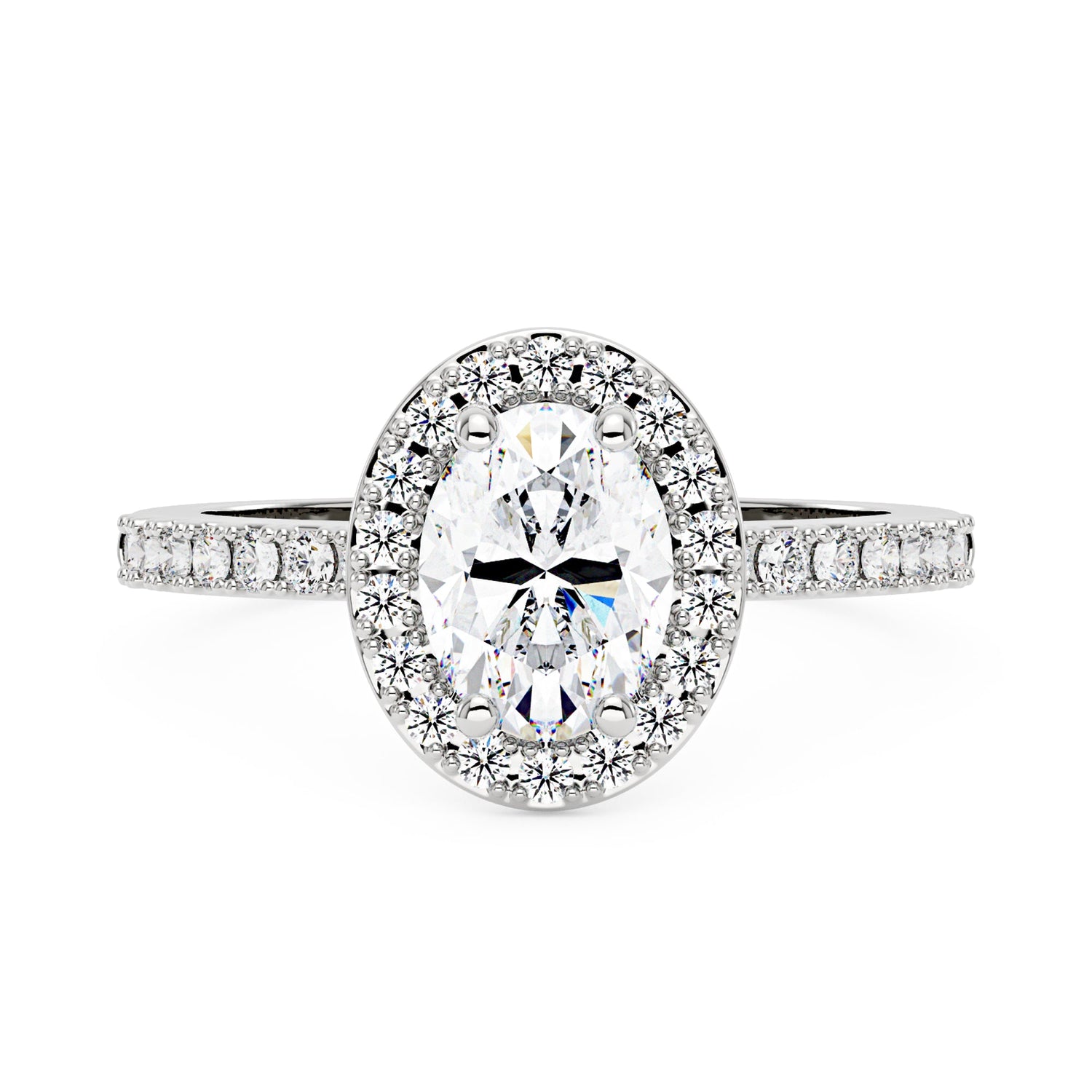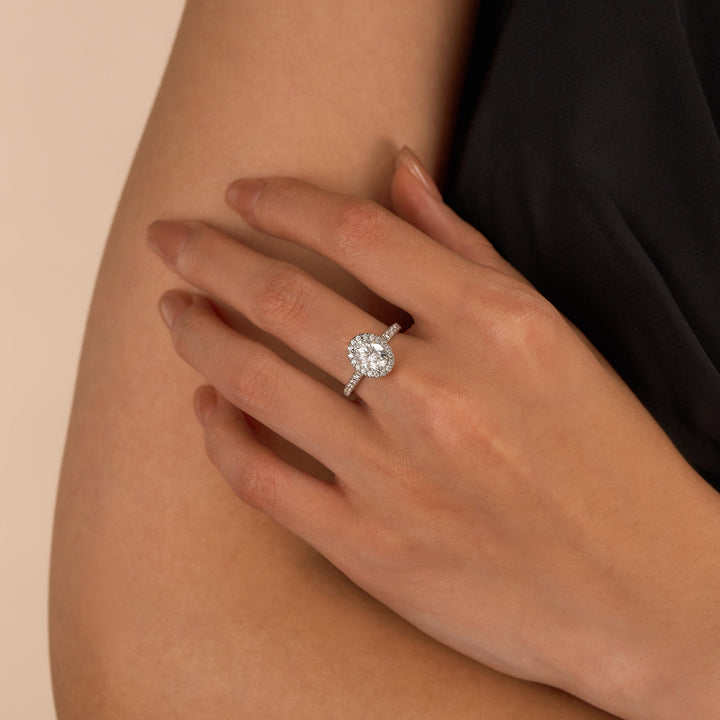 1.5 Carat Oval Moissanite Halo Pave Band Ring