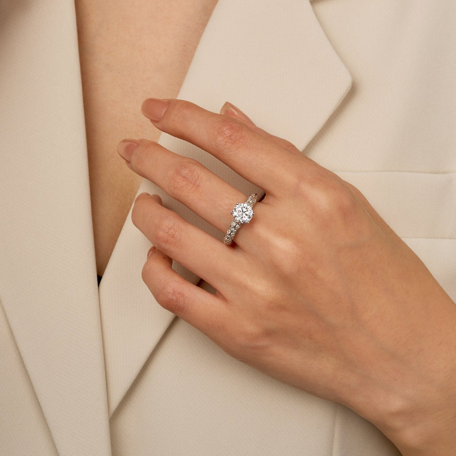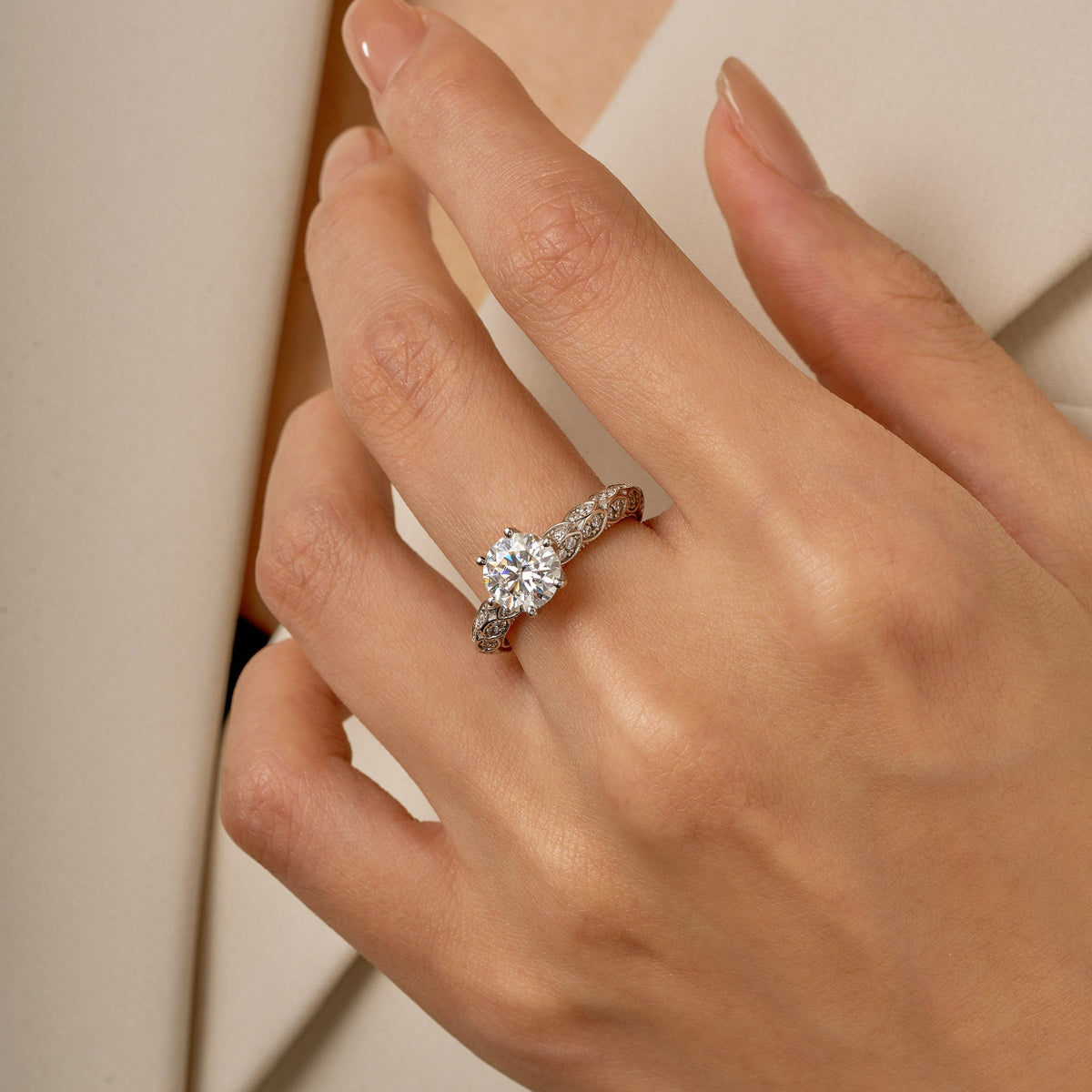1.5 Carat Luxury Band Solitaire Moissanite Engagement Ring