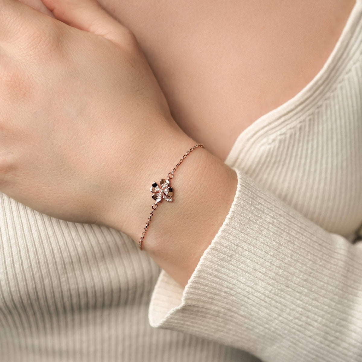 This Four Leaf Clover Bracelet Sterling Silver by Hey Happiness symbolizes good luck with a delicate four-leaf clover design. Expertly crafted from sterling silver, it is available in gold, rose gold, and silver finishes, adding meaning and elegance to everyday wear.