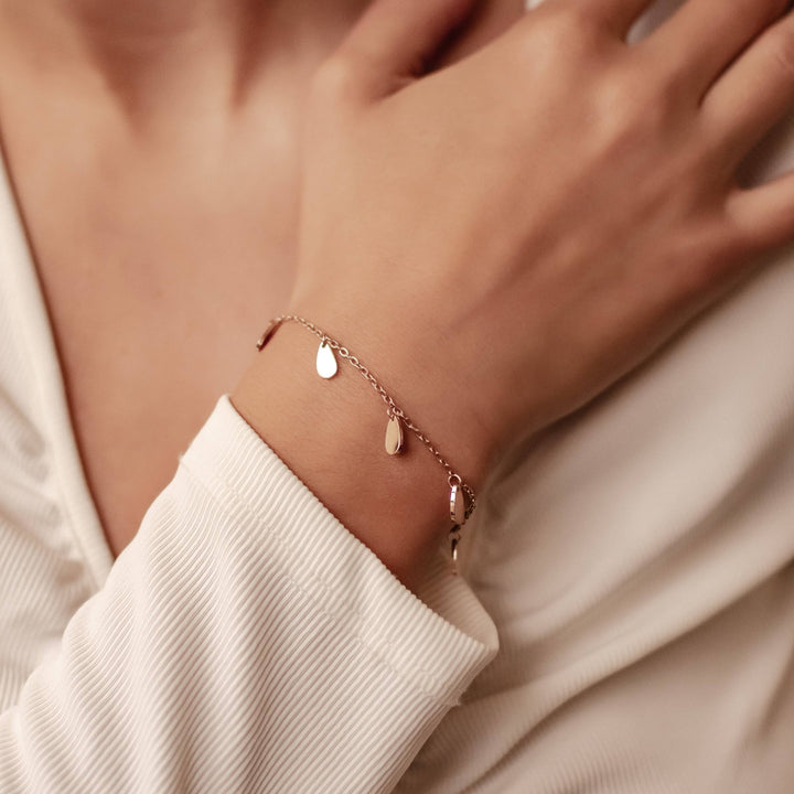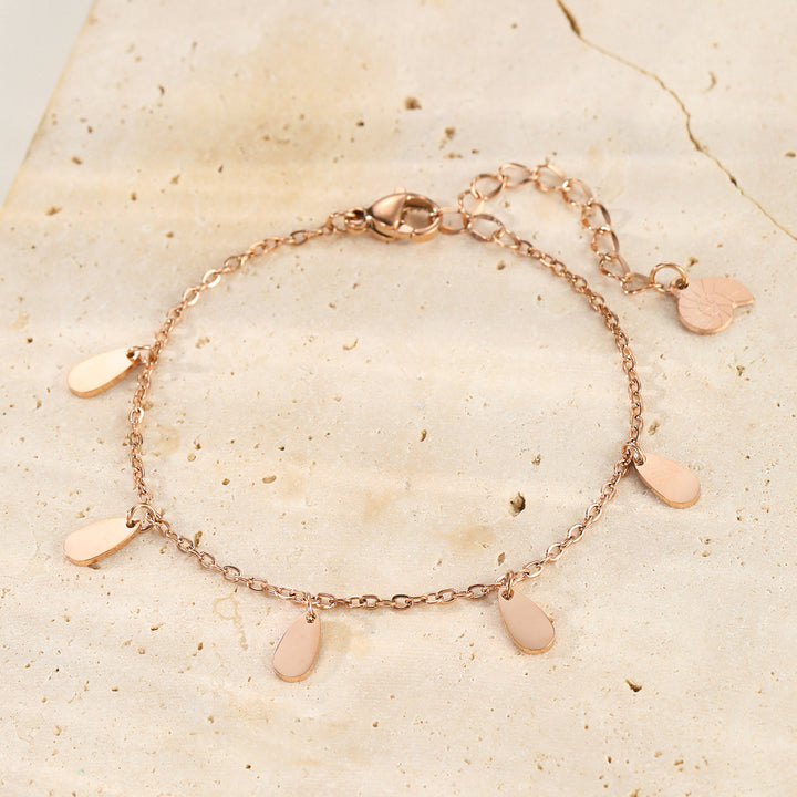 This Drop Charm Bracelet Waterproof by Hey Happiness elevates everyday style with five exquisite metal drop charms along a polished stainless steel chain. Designed for durability and versatility, the bracelet features a secure spring clasp and is available in waterproof gold finish for effortless elegance.