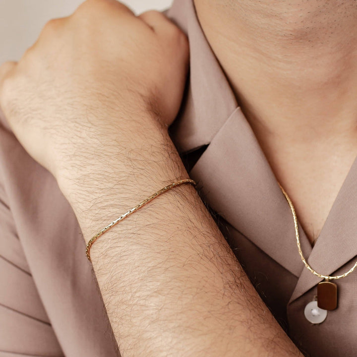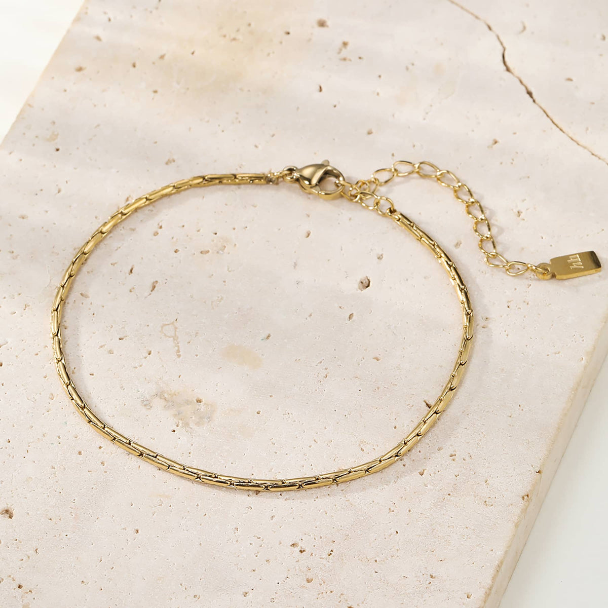 This Cobra Chain Bracelet Waterproof by Hey Happiness features a bold hexagon cobra chain pattern crafted from tough stainless steel. Its durable yet modern design adds a refined edge to any look. Available in gold and silver finishes, it’s built for everyday waterproof wear.