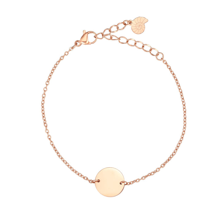 Crafted with rose gold-plated stainless steel chain and tiny flat circle pendant. Adjustable chain closure for a customizable fit.