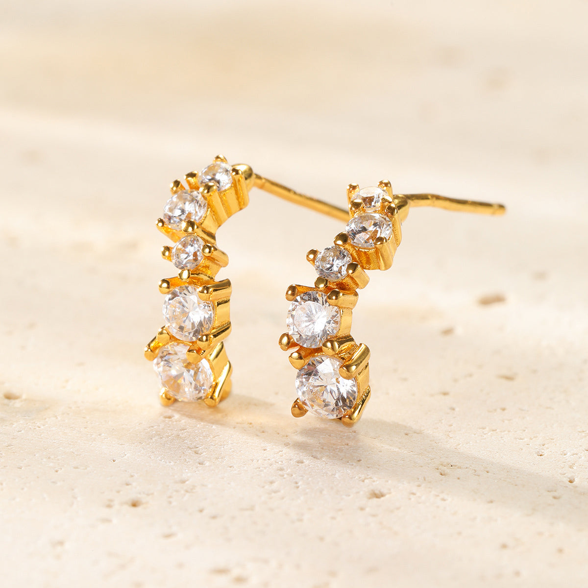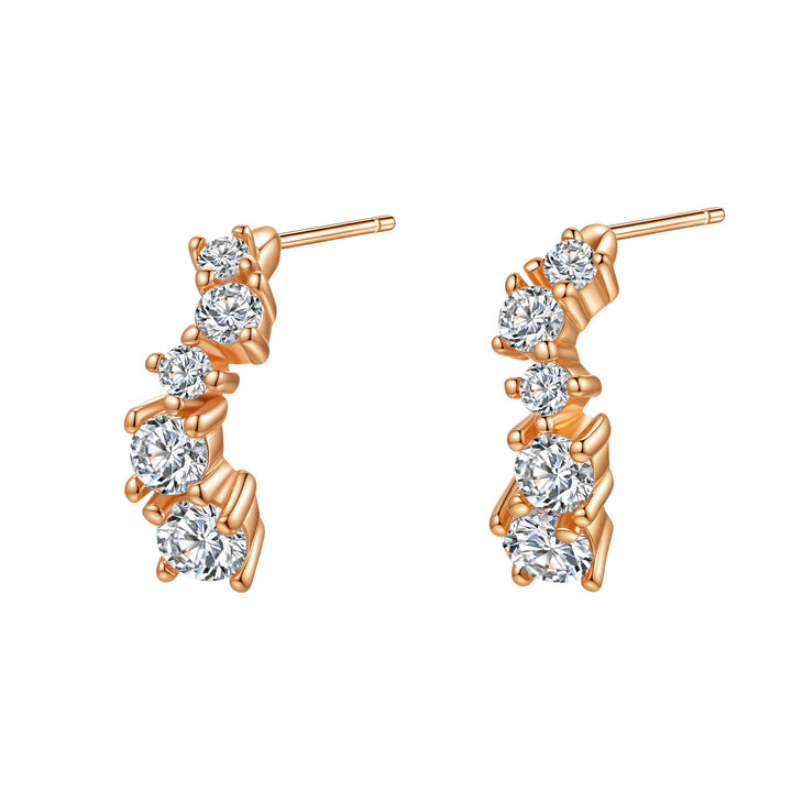 Made from plated metals in gold, rose gold, and silver. Hoop earrings with shimmering stones.