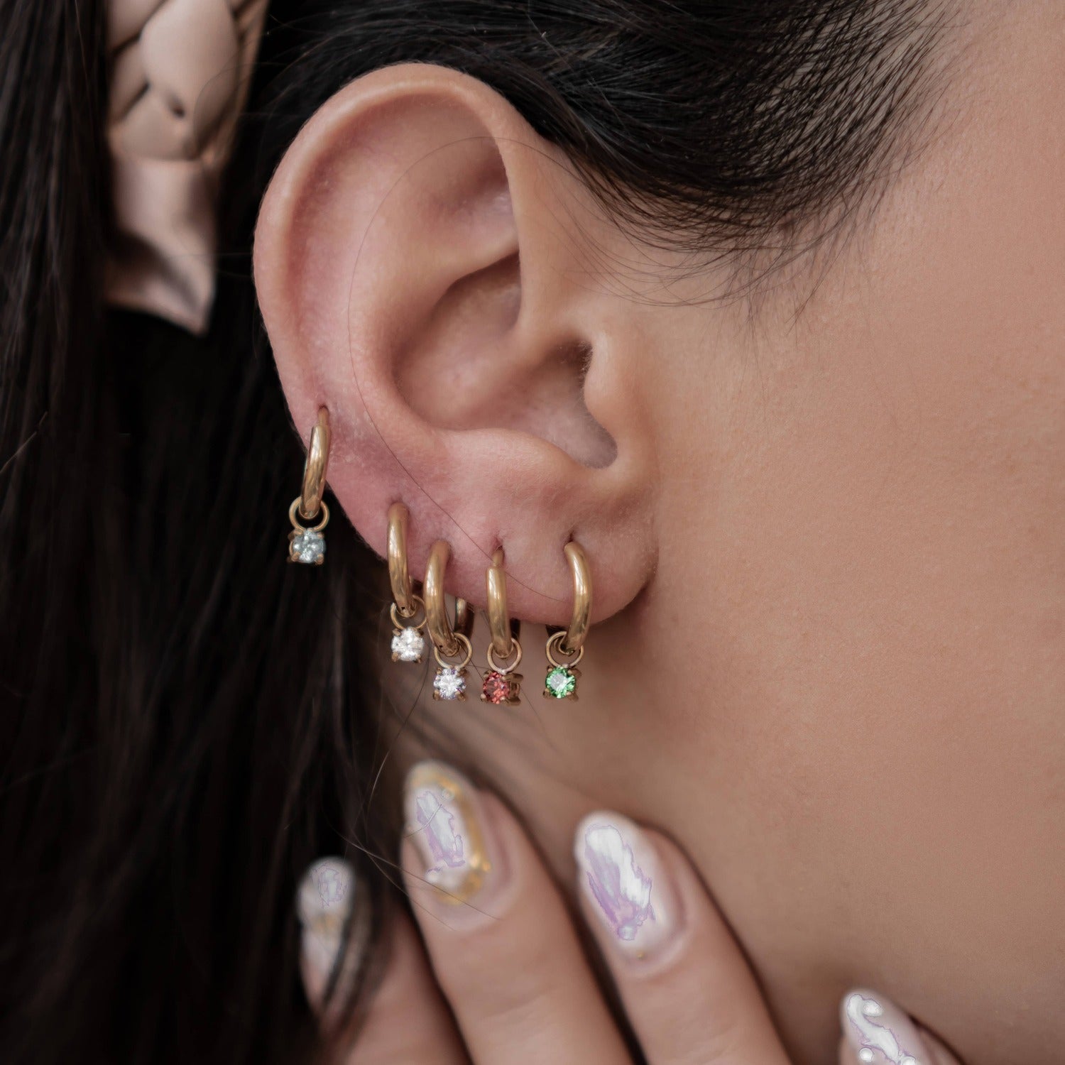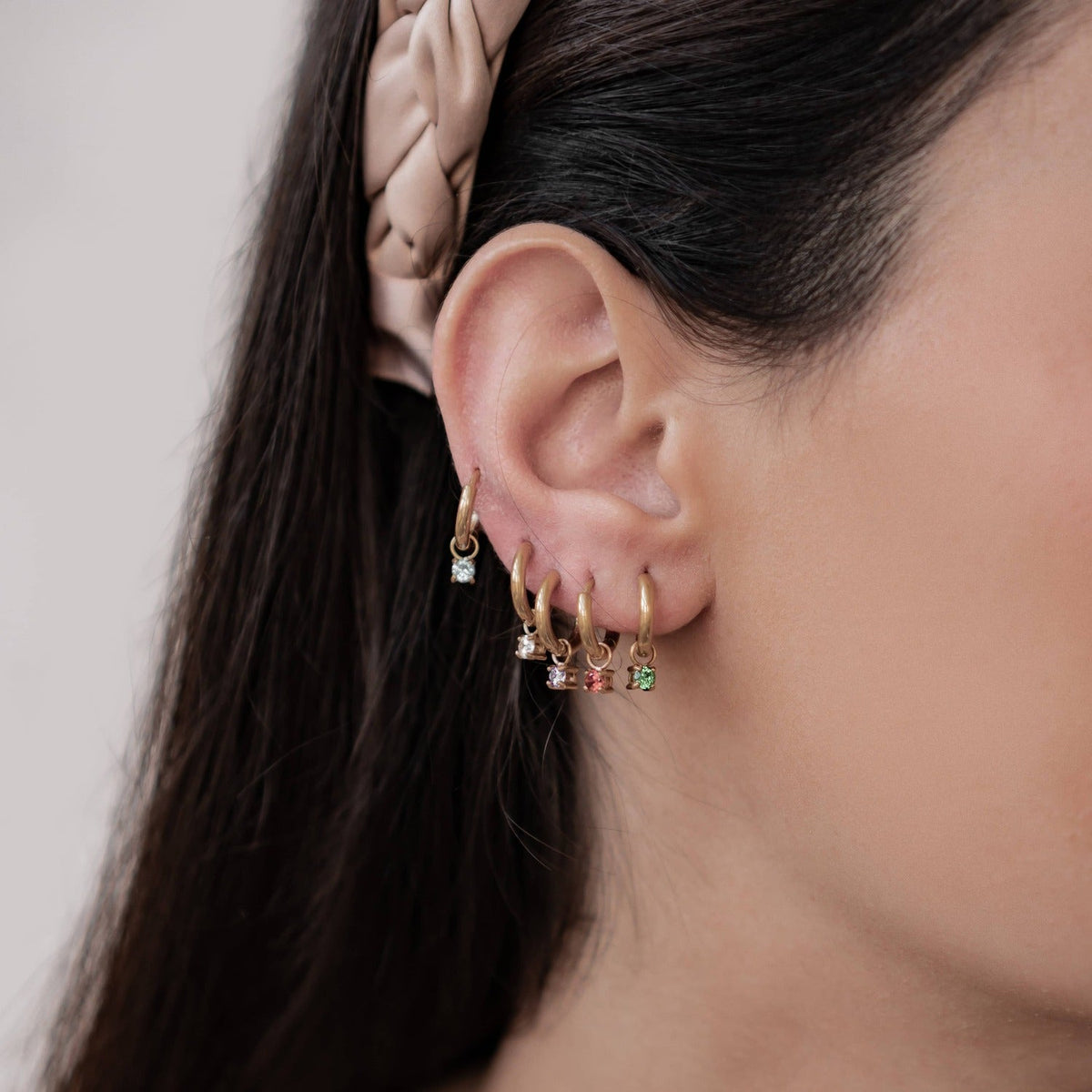 These Rainbow Gemstone Hoop Earrings by Hey Happiness add a vibrant pop of color and modern sophistication to your everyday style. Each high-quality stainless steel hoop showcases a hanging rectangular gemstone, available in five dazzling hues: White, Purple, Aquamarine, Green, and Red. Designed for versatility, these earrings bring a refined yet playful energy to any look, perfect for stacking or wearing solo as a colorful statement.