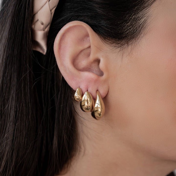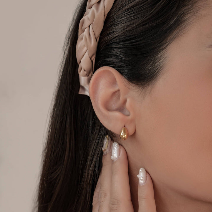 These Mini Dome Hoop Earrings Stainless Steel by Hey Happiness feature chunky, sleek domed hoops made from durable stainless steel. Designed for versatility and style, they fasten securely with butterfly closures and come in gold and silver finishes—ideal for elevating any outfit.