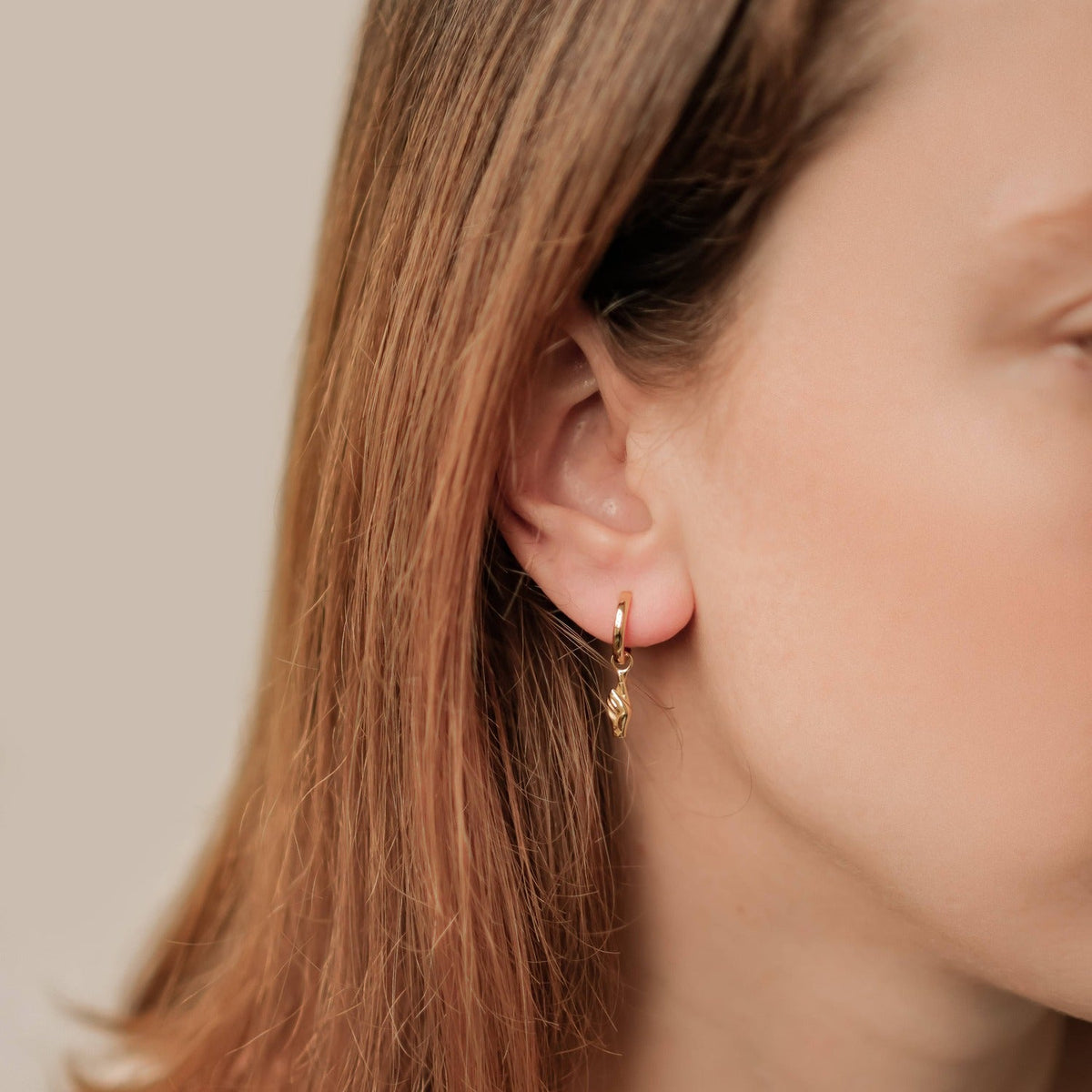 Made from sterling silver with polished gold finish; huggie style; available as a pair.