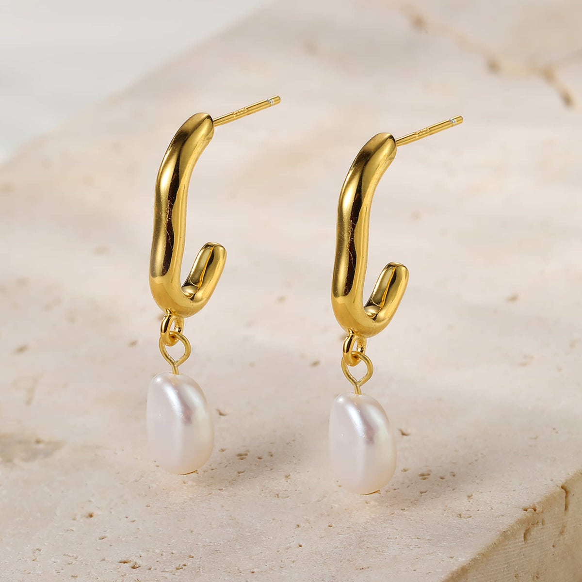 These Chunky Pearl Hoop Earrings Sterling Silver by Hey Happiness blend elegant pearls with sterling silver hoops for a sophisticated, versatile accessory. Offered in gold and silver tones, these earrings add timeless grace to any outfit, suitable for both casual and formal occasions.