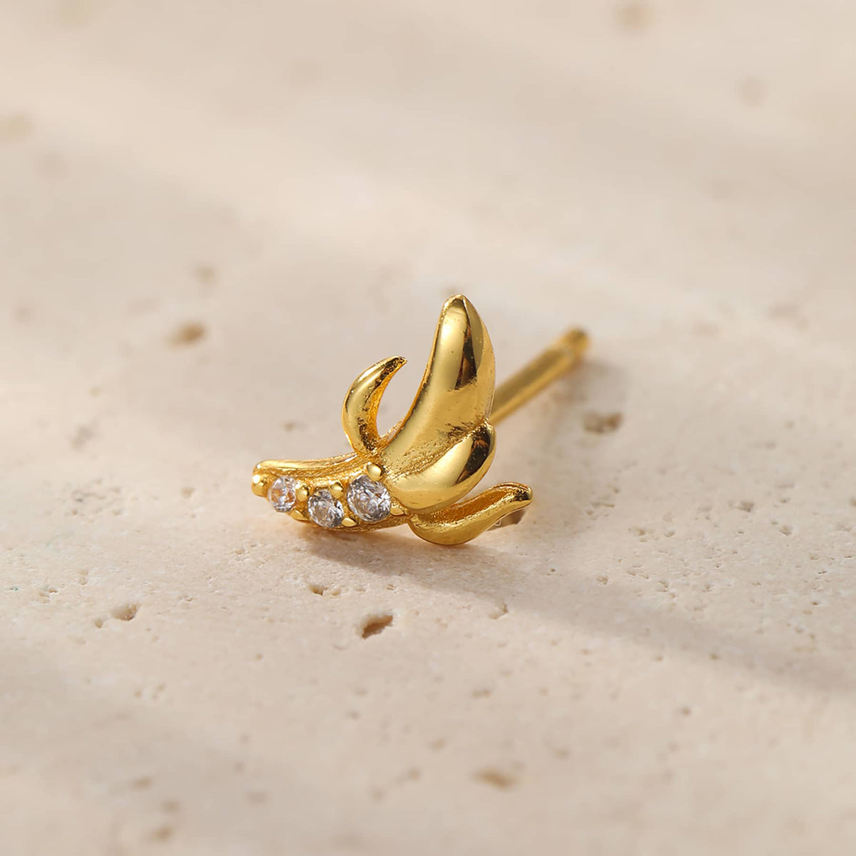 These Banana Stud Earrings Sterling Silver by Hey Happiness are playful and charming, shaped like peeled bananas with three sparkling zirconia stones embedded for a fun, flirty accent. Perfect for brightening your ear stack or adding a whimsical touch to any look. Available in 925 sterling silver, 18K gold-plated sterling silver, and rose gold-plated sterling silver.