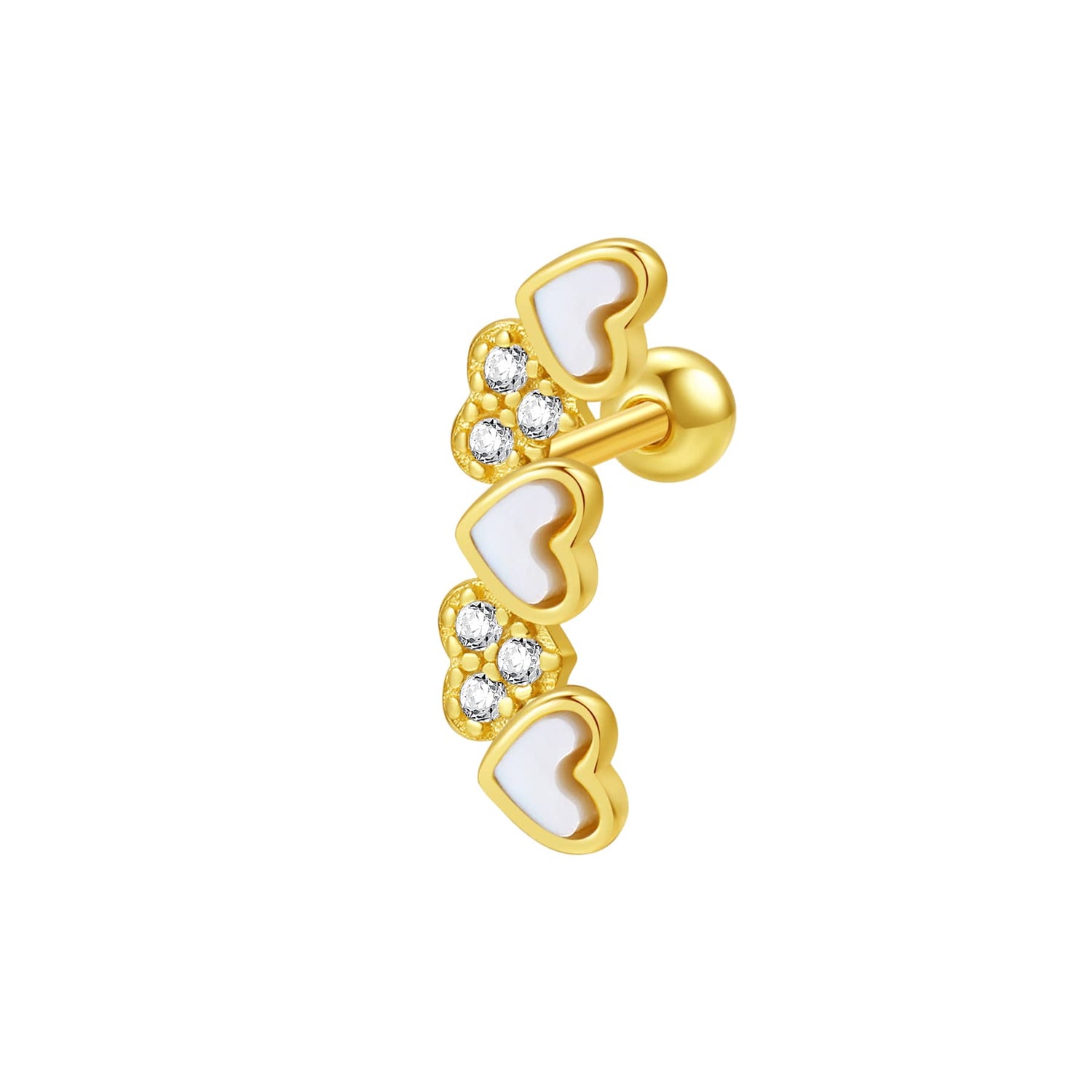Made from sterling silver; heart shell design; ball-shaped backing; available in gold and silver.